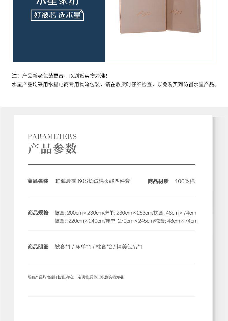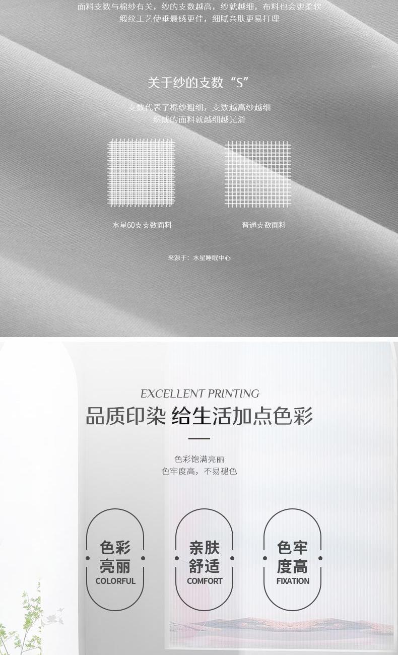 面料:棉 被套:200cm×230cm×1 床单:230cm×253cm×1 枕套:48cm×74cm×2