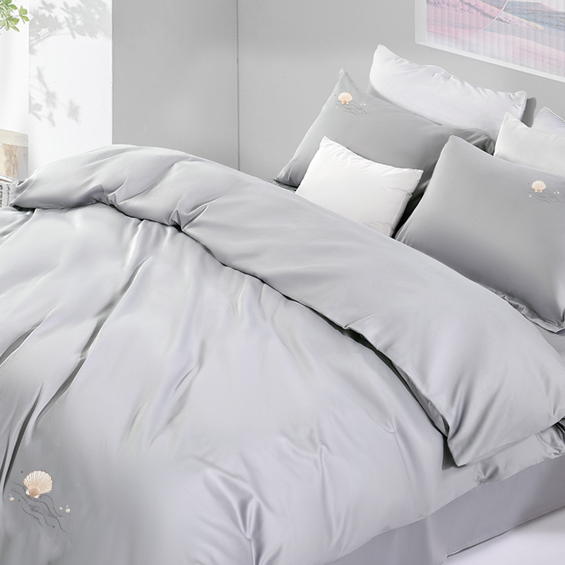 水星家纺60s刺绣全棉四件套珀海晨雾200*230cm