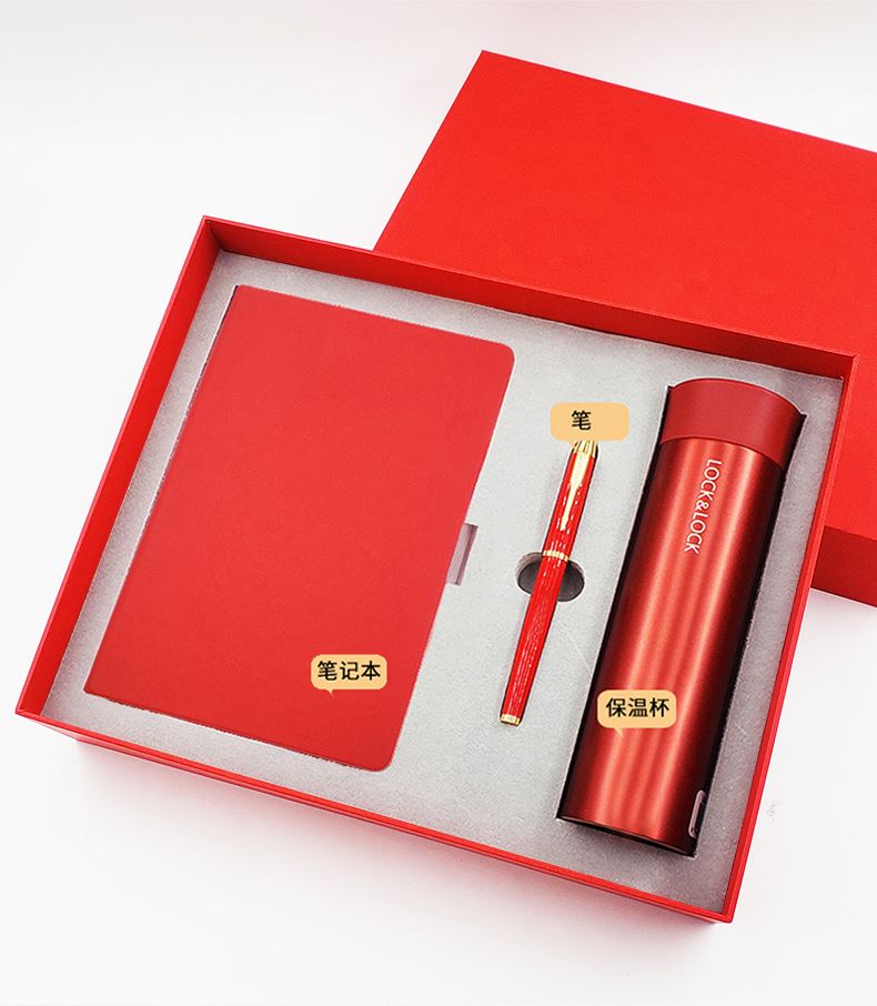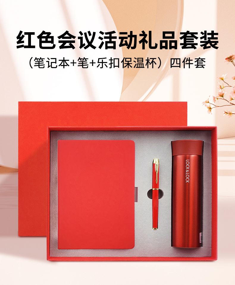 礼盒配置: 1、型号:LHC4019 400ML LOCK&LOCK 保温杯 2、A5搭扣硬皮PU皮笔记本 3、金属烤漆签字笔 4、颜色:红色 5、红色包装盒尺寸:328x263x75mm 6、红色手提袋尺寸:335x293x85mm 7、重量:约27kg/箱