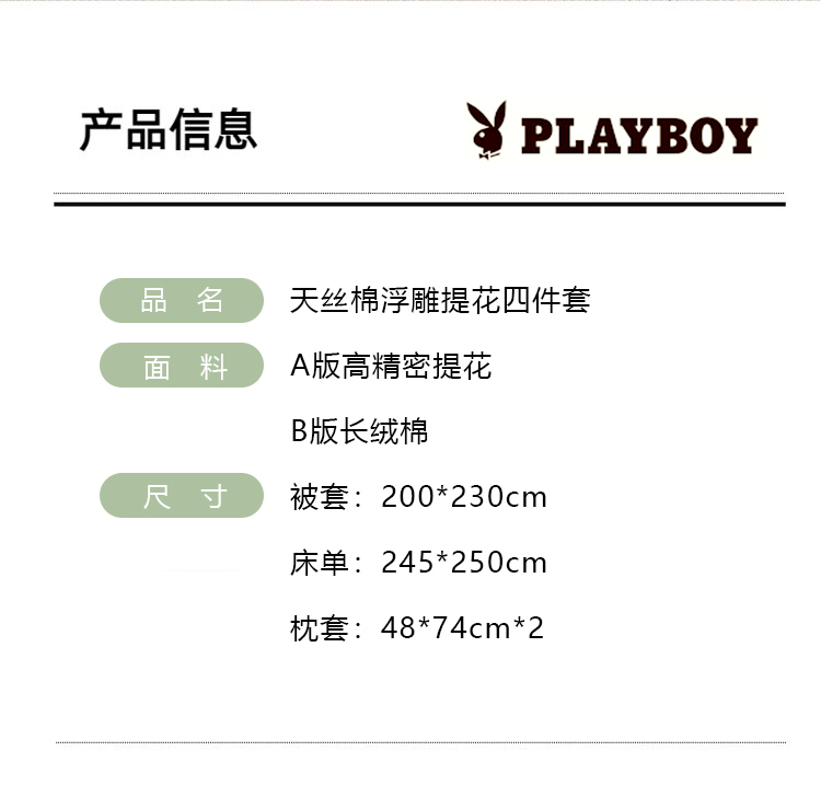 花花公子天丝棉浮雕提花四件套PB-25MT719