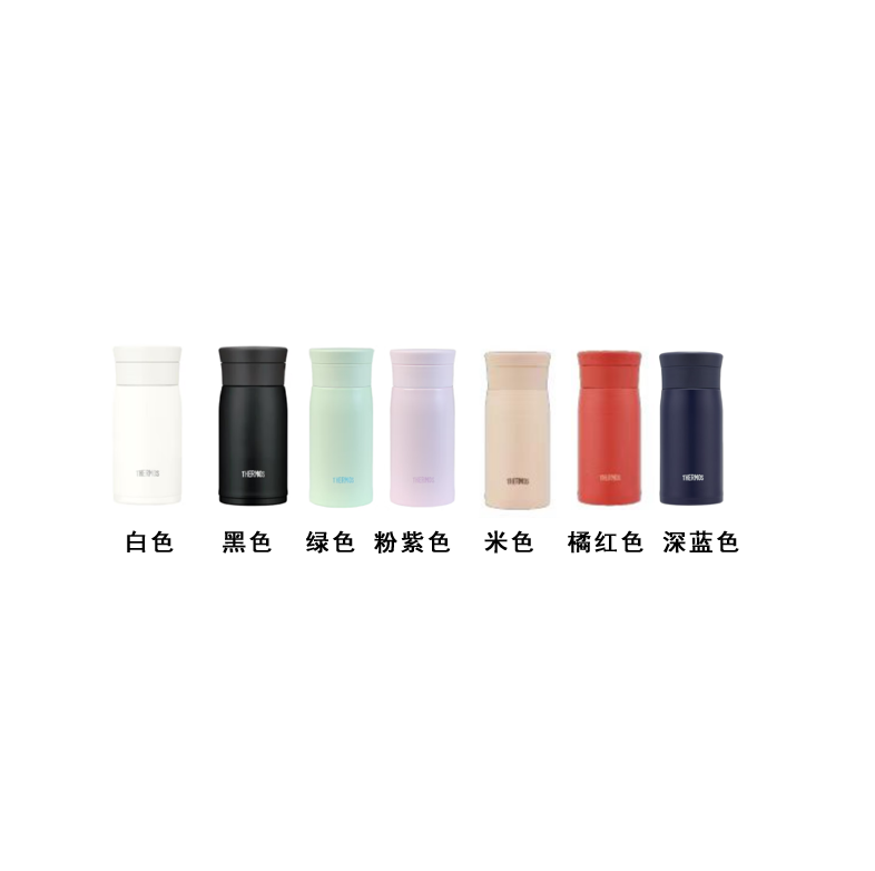 颜 色: WH白色 /MBK黑色/GR绿色/PL粉紫色/LC藕粉/OR红色 容 量:350毫升 保温效力:68℃以上/6小时 保冷效力:10C以下(6小时) 外管材质:304不锈钢 内管材质:304不锈钢 密封圈:食品级硅胶 杯盖材质:食品级PP