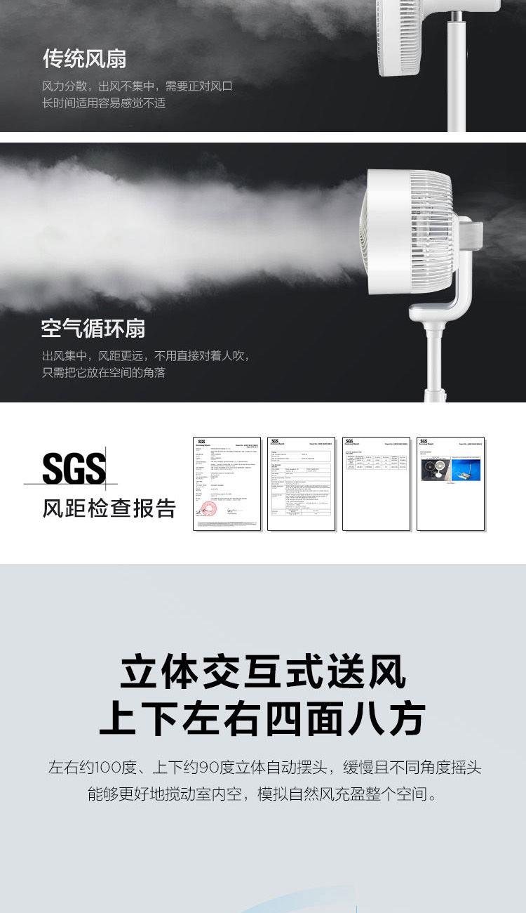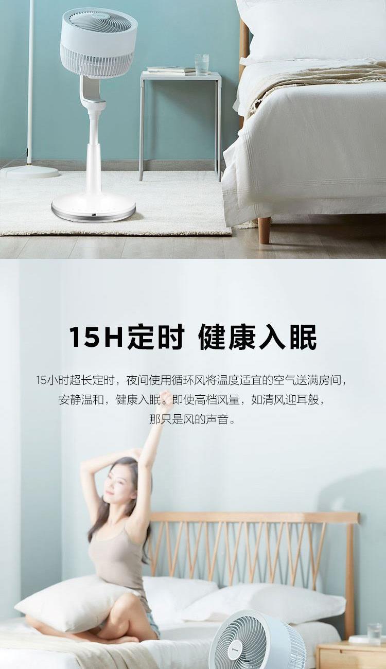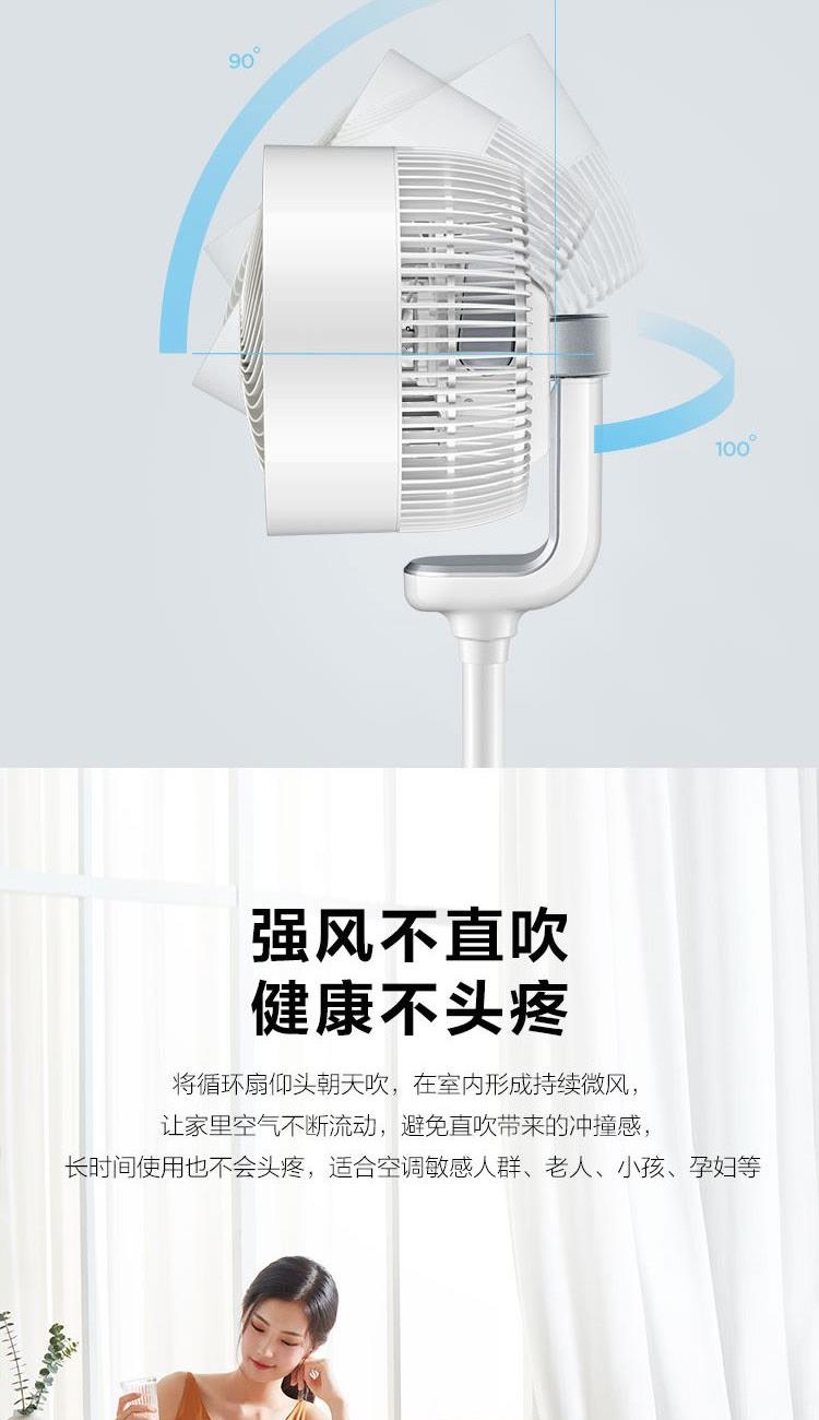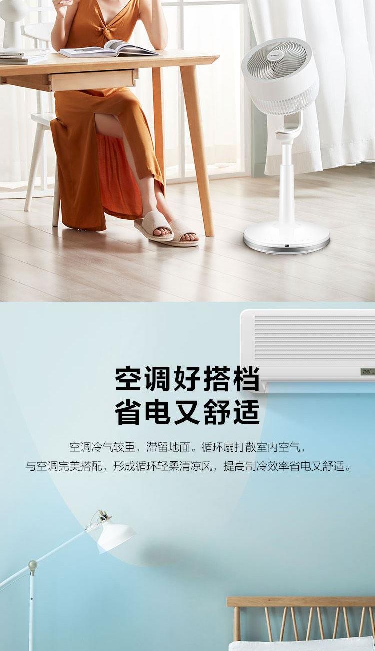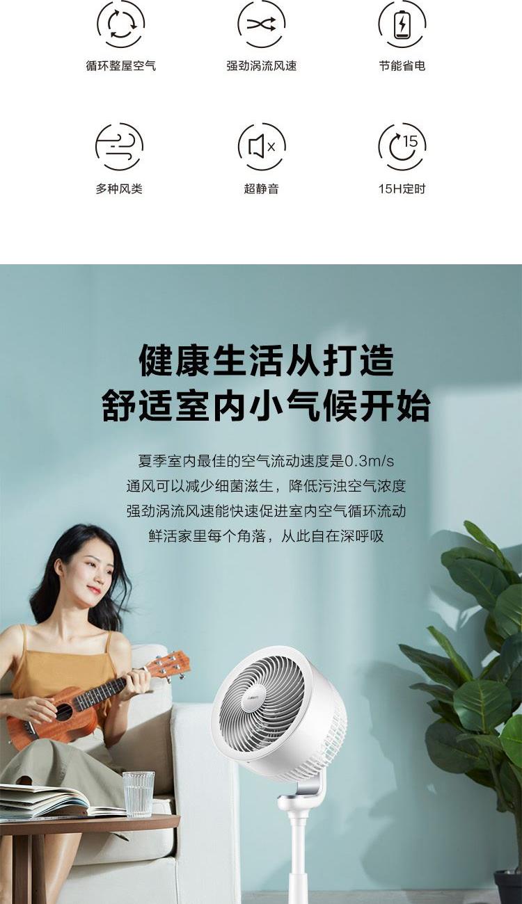 额定电压:220V 额定功率:37W 额定功率:50Hz 控制方式:遥控式 定时:15小时预约定时开机 净重:4.04kg 包装尺寸:680*335*340mm 包装明细:遥控器、说明书 激活整屋空气,让家处处生风 强劲涡流风束,激活全屋空气 大风力风距可达20米,跨房间通风换气更轻松 立体交互式送风,上下左右四面八方 强风不直吹,健康不头疼 空调好搭档,省电又舒适 15H定时,健康入眠 可拆洗网罩易清洗,时时享受健康洁净风