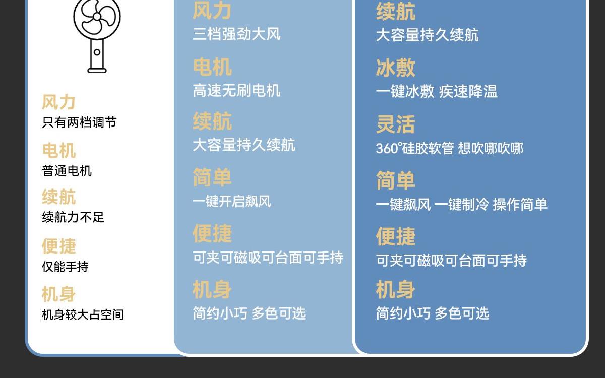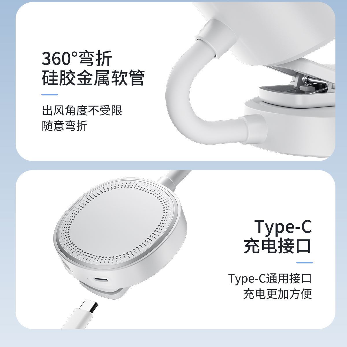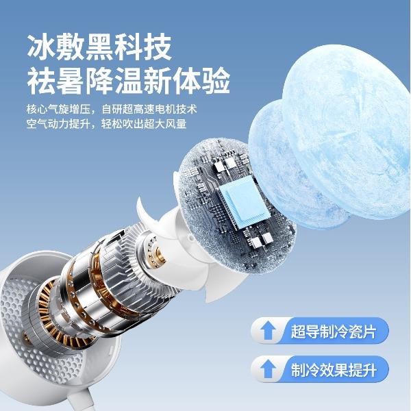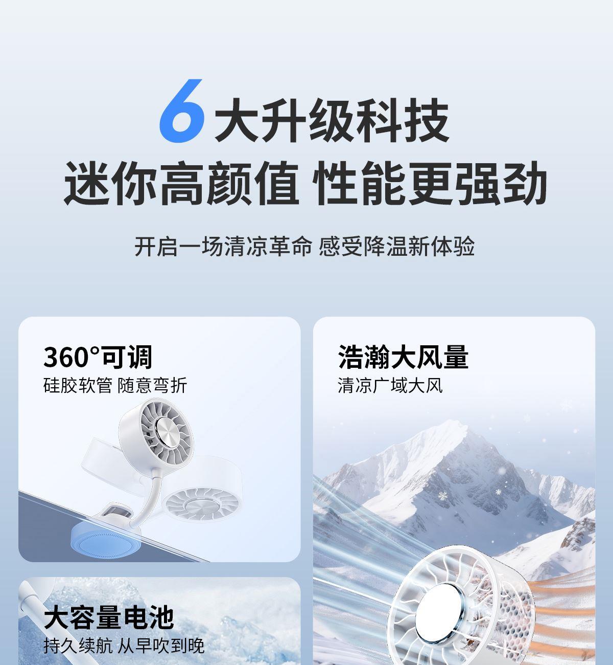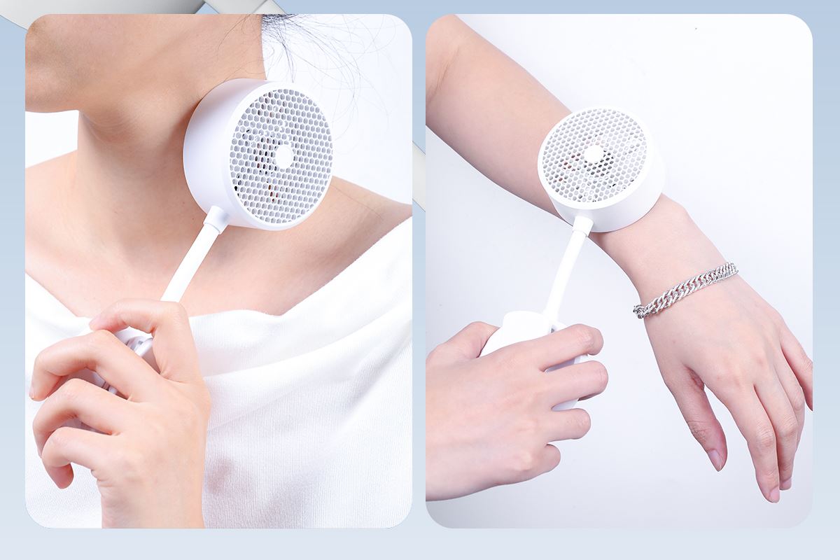 *软管可随意弯折调整出风角度,底座带磁吸可吸附手机上和任何金属表面 *底座带夹子可夹雨伞,电脑等 *制冷款带冰敷功能(也有不带冰敷可选)