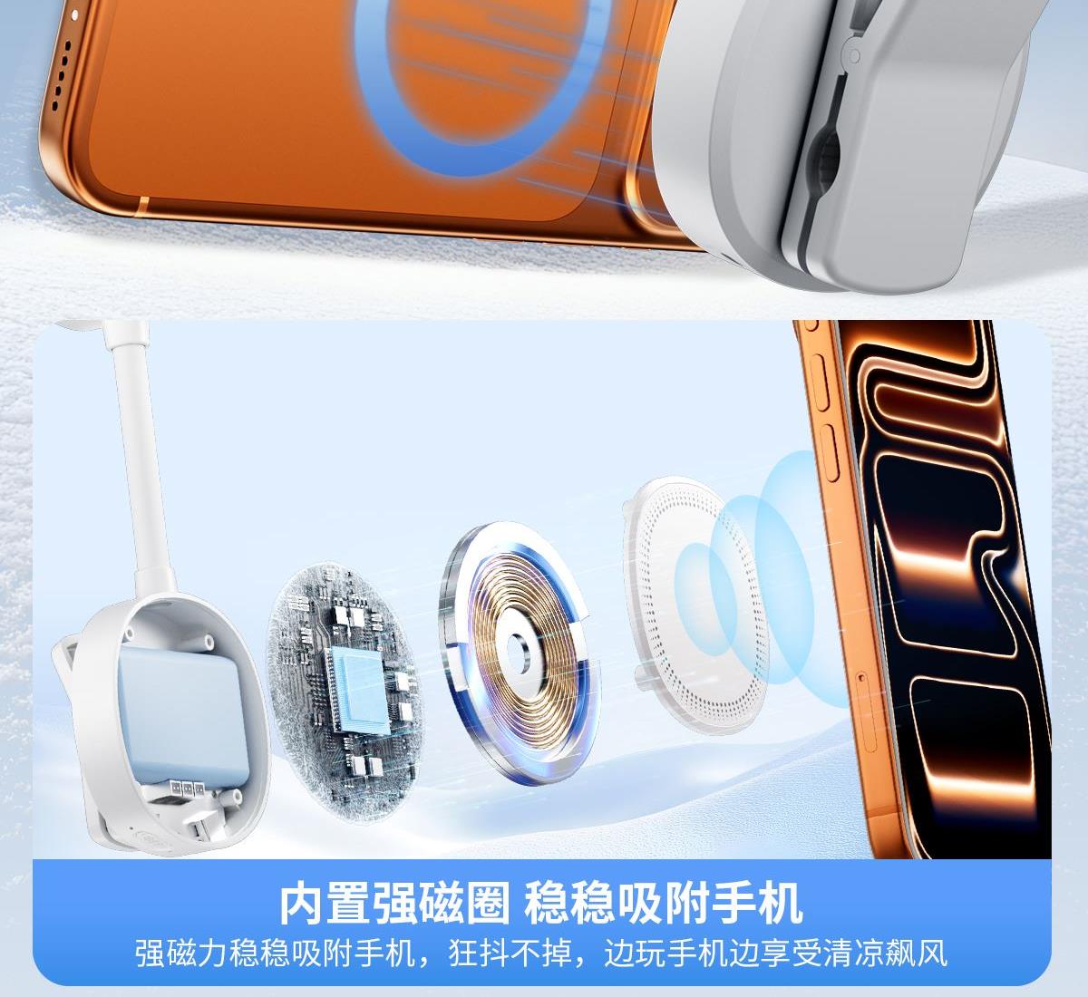 右心新款软管手机磁吸制冷小风扇带夹子N28