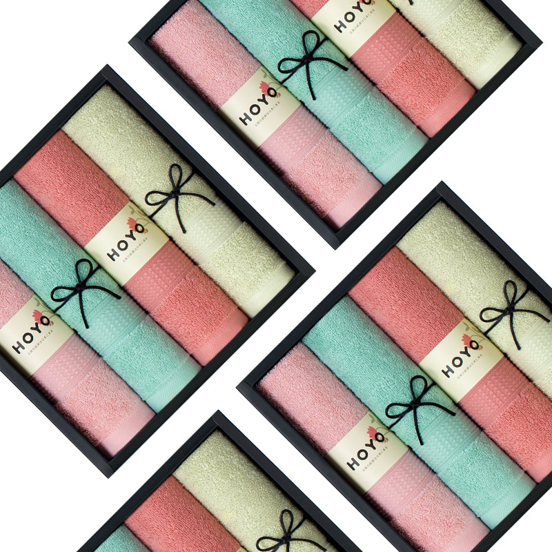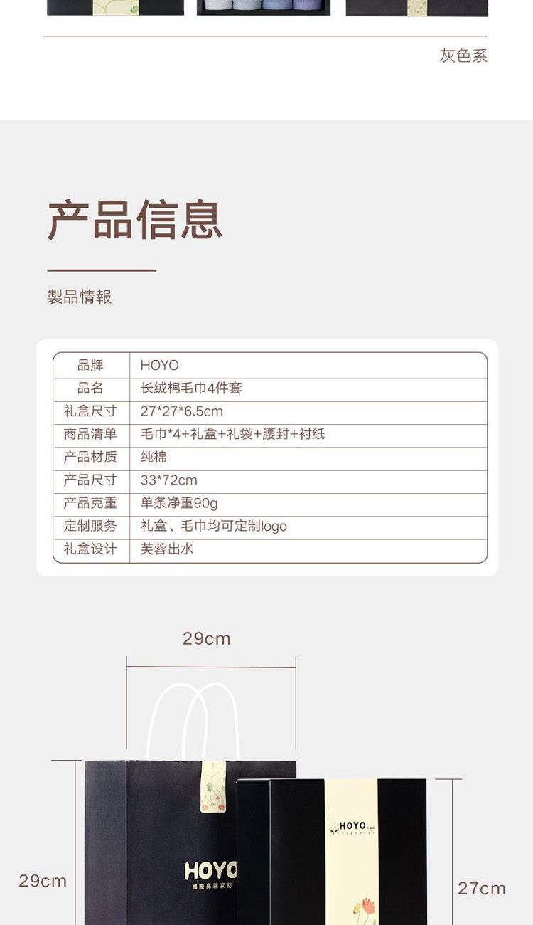 HOYO4505臻品长绒棉毛巾4件套礼盒彩色系33*72cm