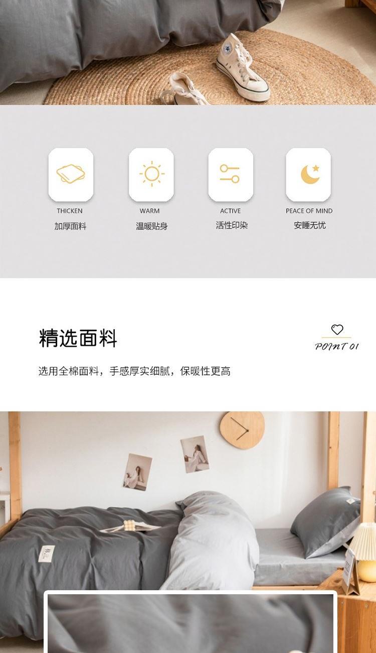 三件套:被套:155*200cm; 床单:160*230cm;枕套:48*74cm*1只; 被芯:4斤(150*200cm) 立体床垫:90*200cm;单只枕芯 面料:全棉 (三件套) 1、一站式购齐,领包入住 2、三件套优选好棉,贴身的更要精挑细选 3、采用新一代活性印染工艺,健康环保 4、吸湿亲肤舒适,轻薄透气,缩水率低