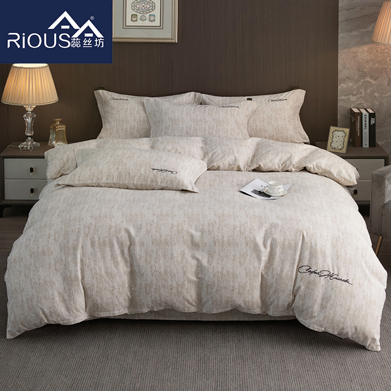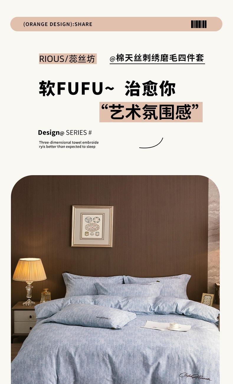 蕊丝坊家纺棉天丝磨毛刺绣床单四件套