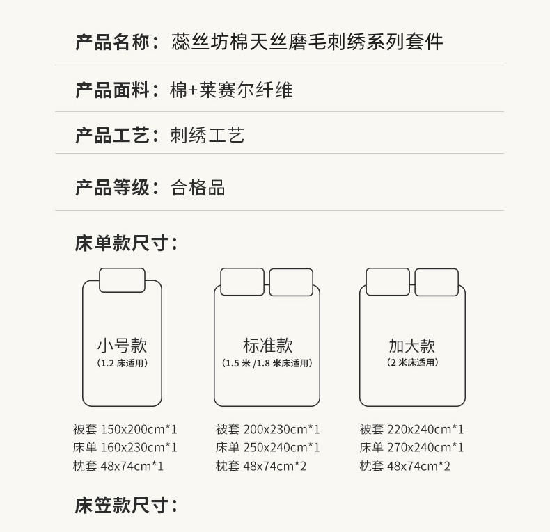 蕊丝坊家纺棉天丝磨毛刺绣床单四件套 蕊丝坊家纺棉天丝磨毛刺绣床单四件套