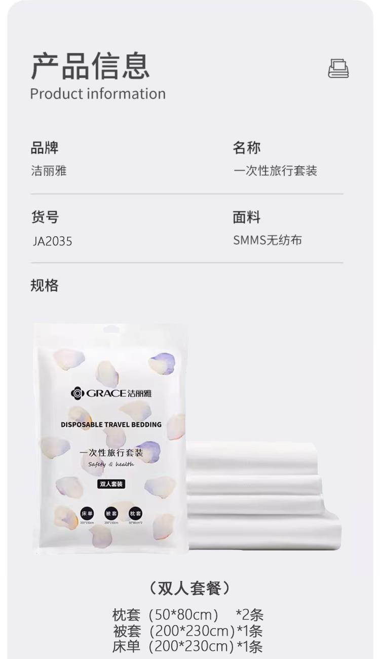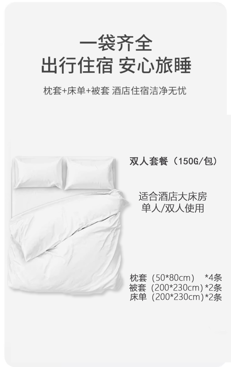 洁丽雅旅行一次性床单被套枕套双人四件套2包13011513