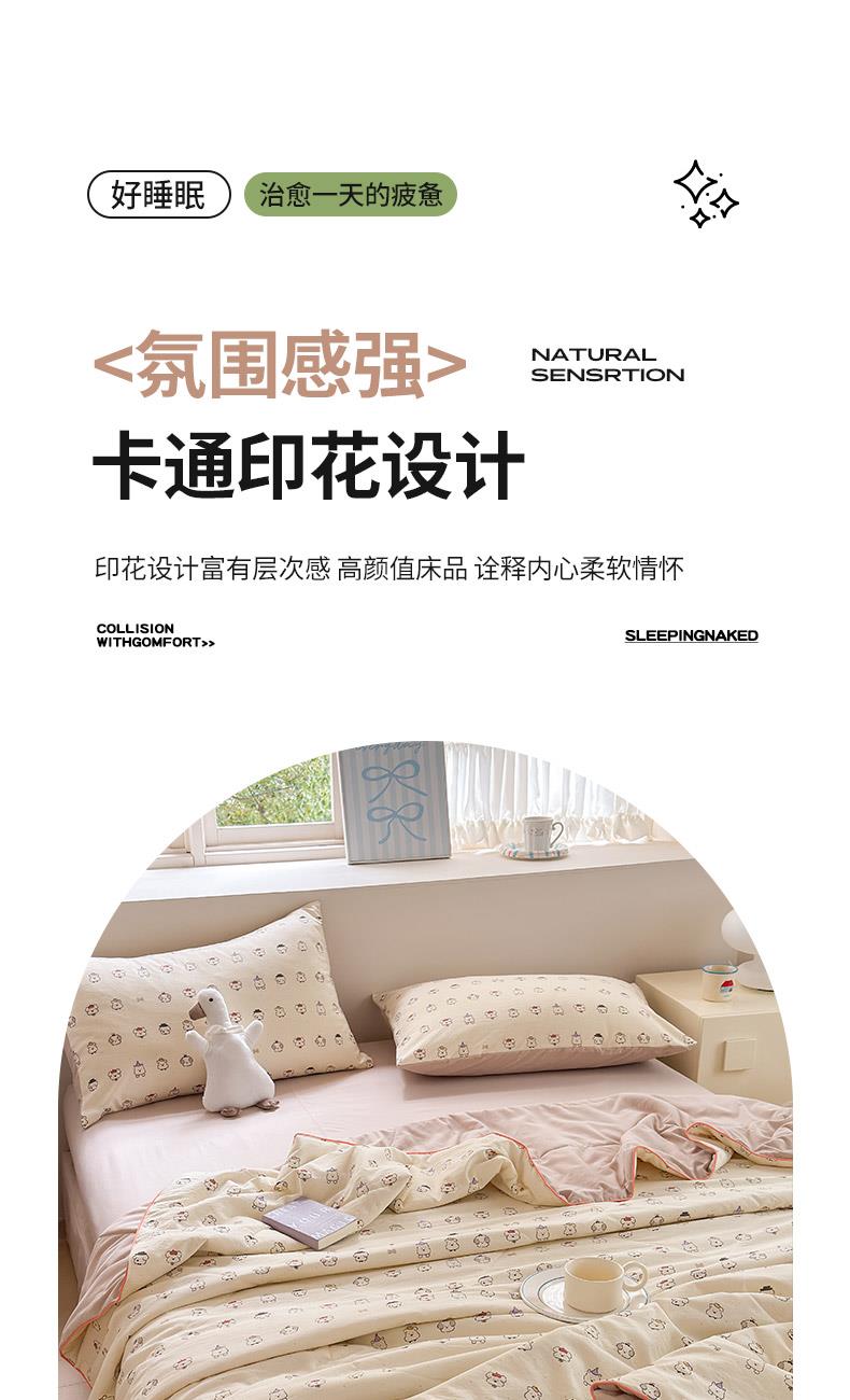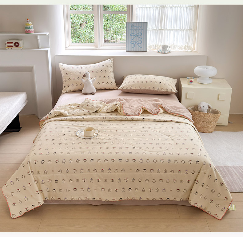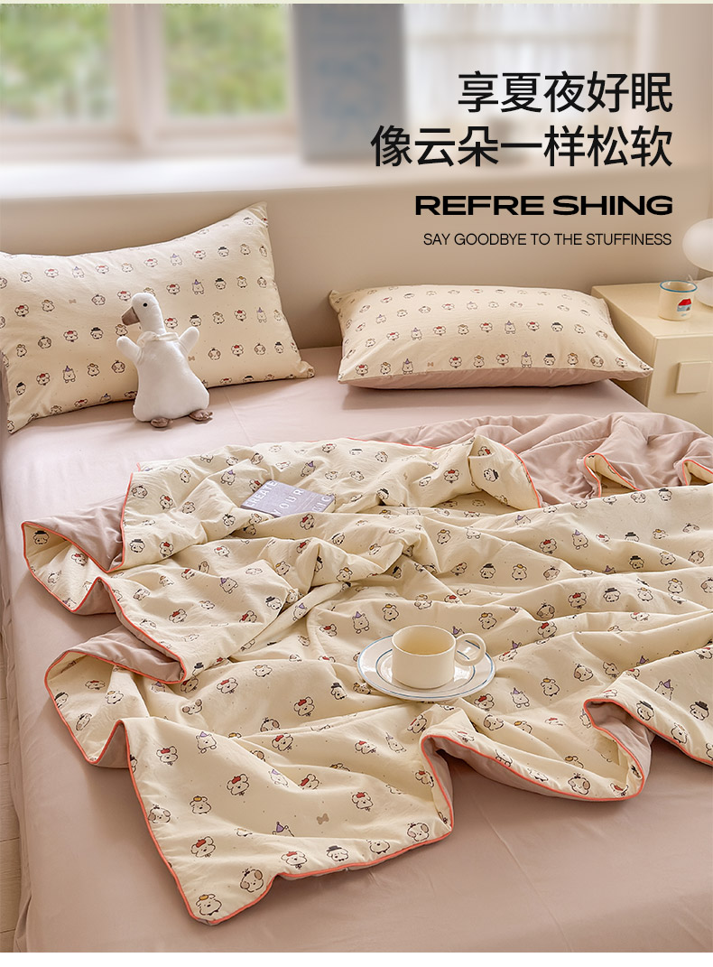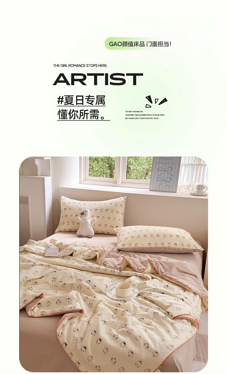 规格:150*200cm 面料:古法水洗棉/聚酯纤维 填充:整张羽丝棉/聚酯纤维 花型:百变狗、爆汁樱桃、波点熊、呆萌兔、花的芳香、花影、曼紫、梦中情兔、莫奈花园、小马哒哒、寻花、烟花秀 古法水洗棉面料,仿全棉的软糯触感,柔软蓬松,像云朵裹身,亲肤不扎身;清新颜值拉满,适配各种卧室风格;易打理不费心,抗皱、不起球、不跑棉,直接机洗不变形、不褪色,懒人友好。