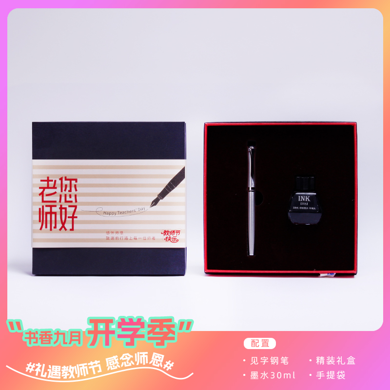 青锦开学季礼遇教师节【见字如晤】金属商务钢笔墨水书写礼盒