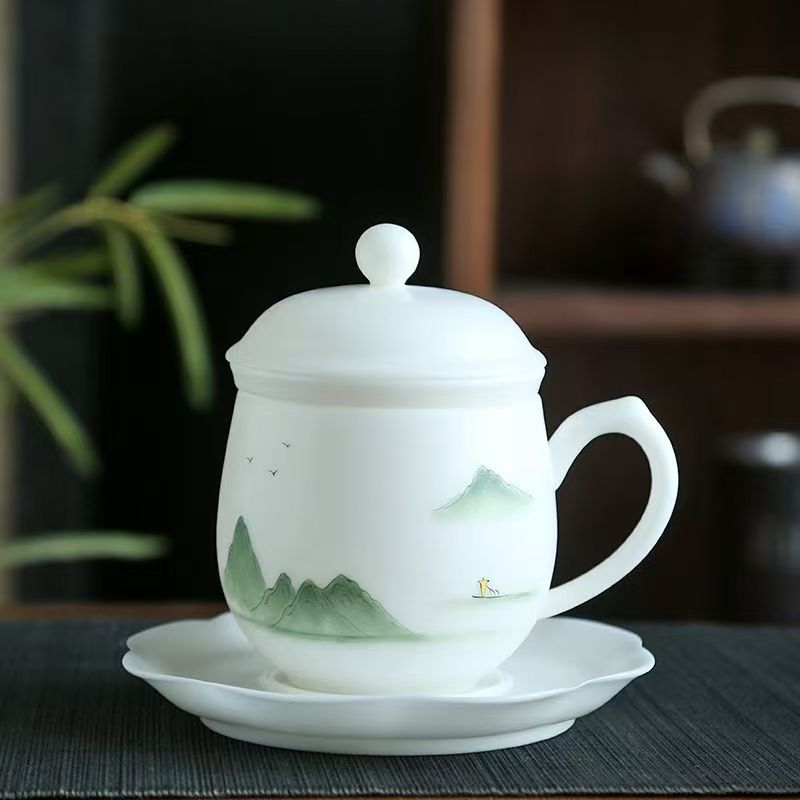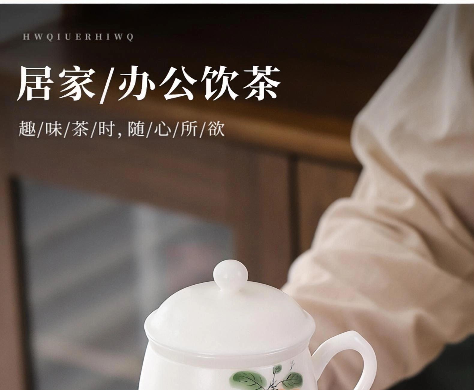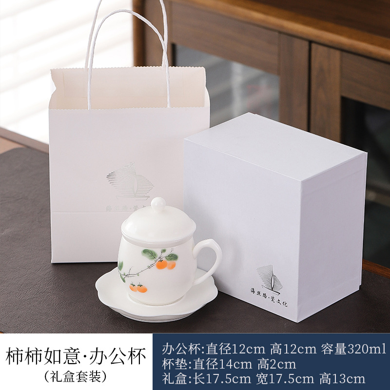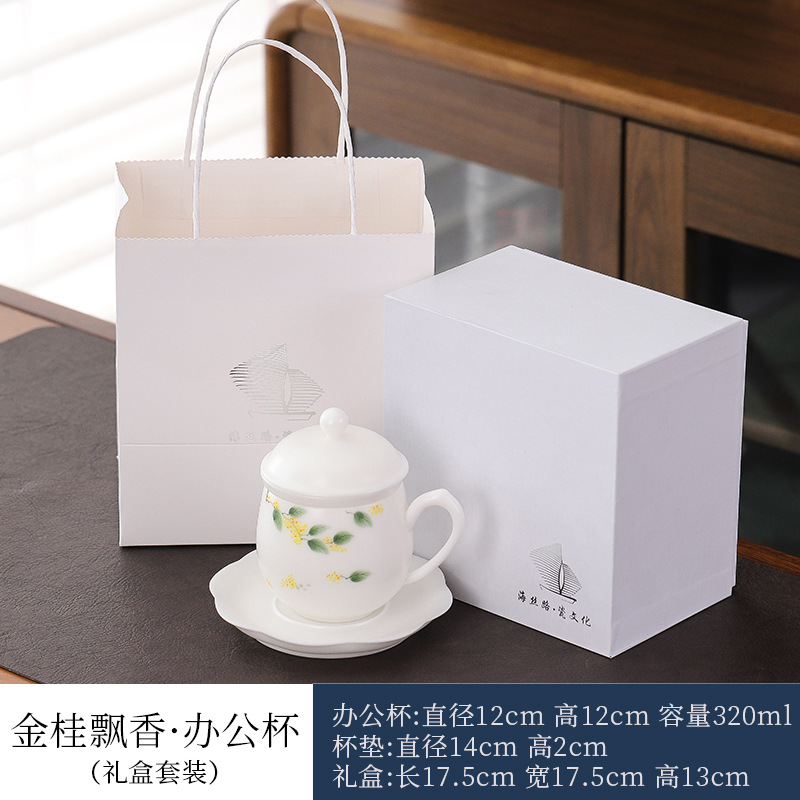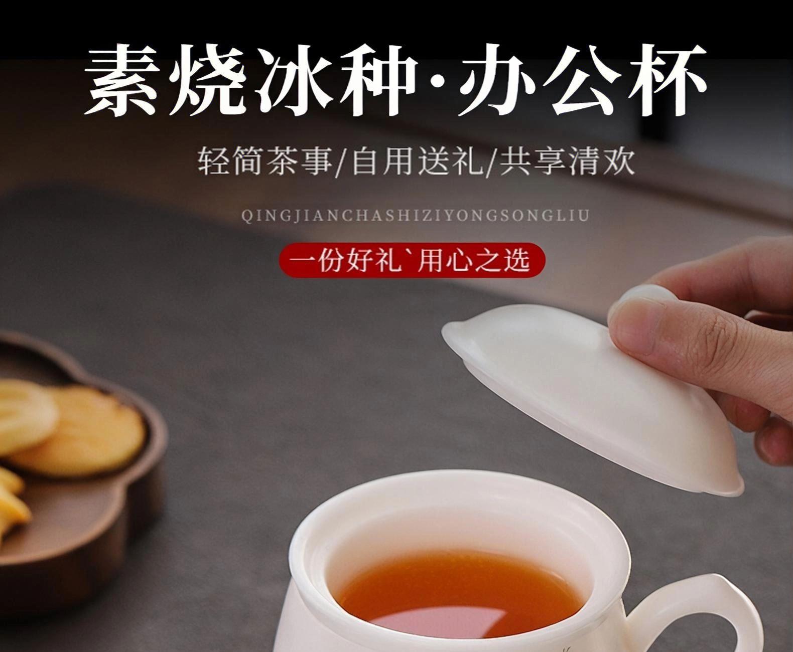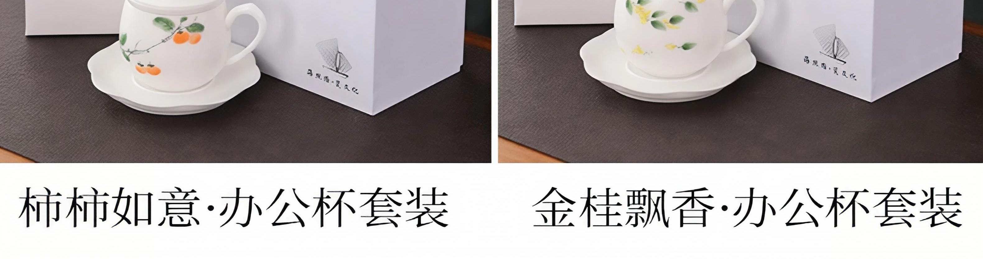 尾桥下窑素烧手绘冰种玉瓷办公杯年会伴手礼商务会议开业礼