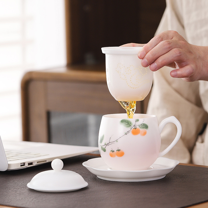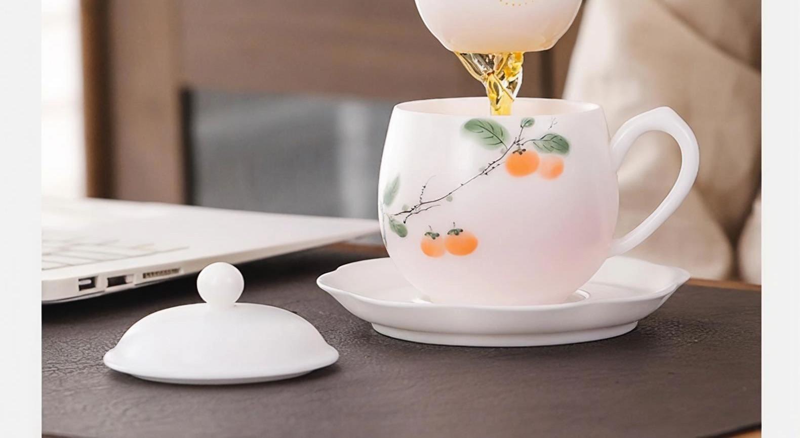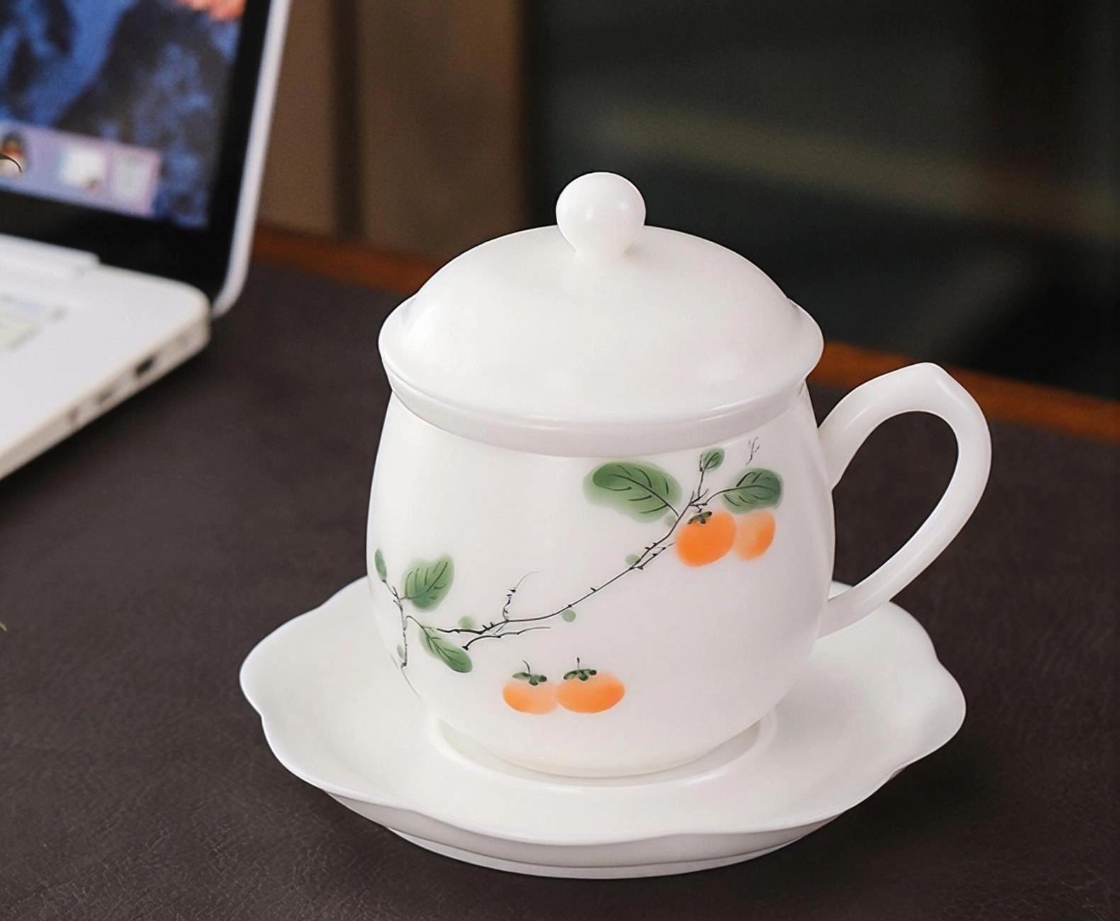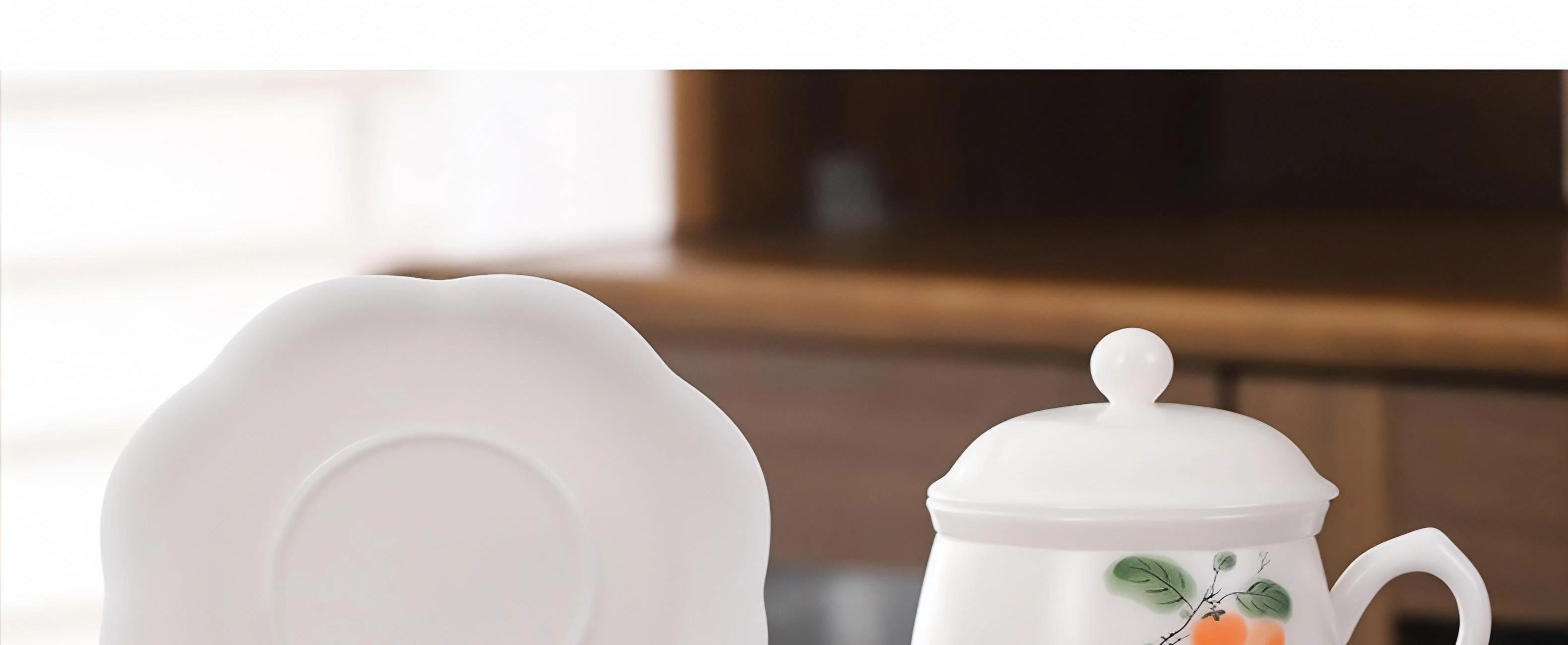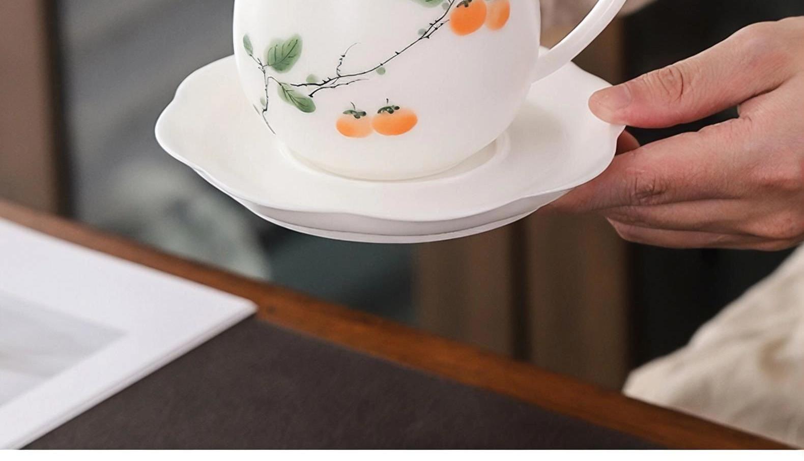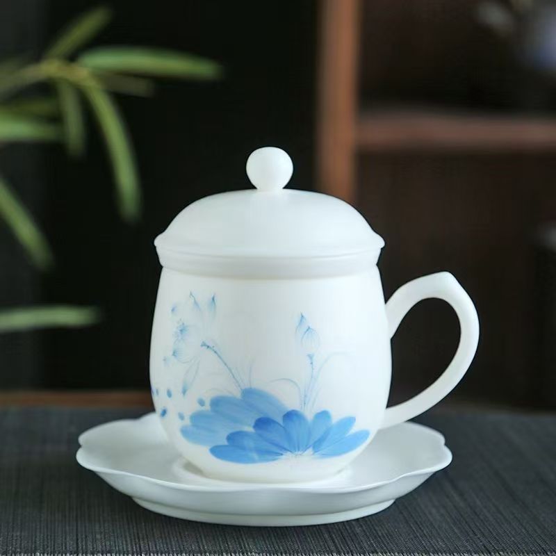 尾桥下窑素烧手绘冰种玉瓷办公杯年会伴手礼商务会议开业礼