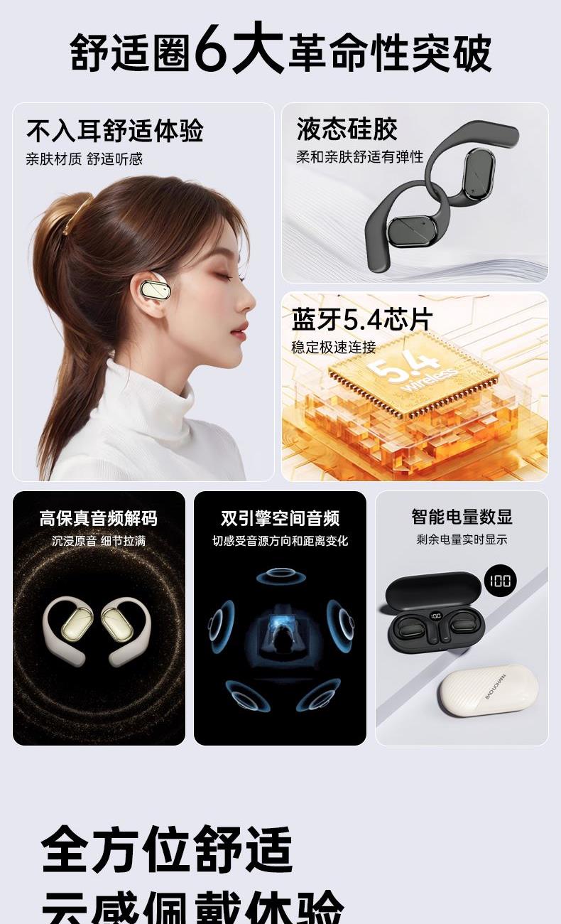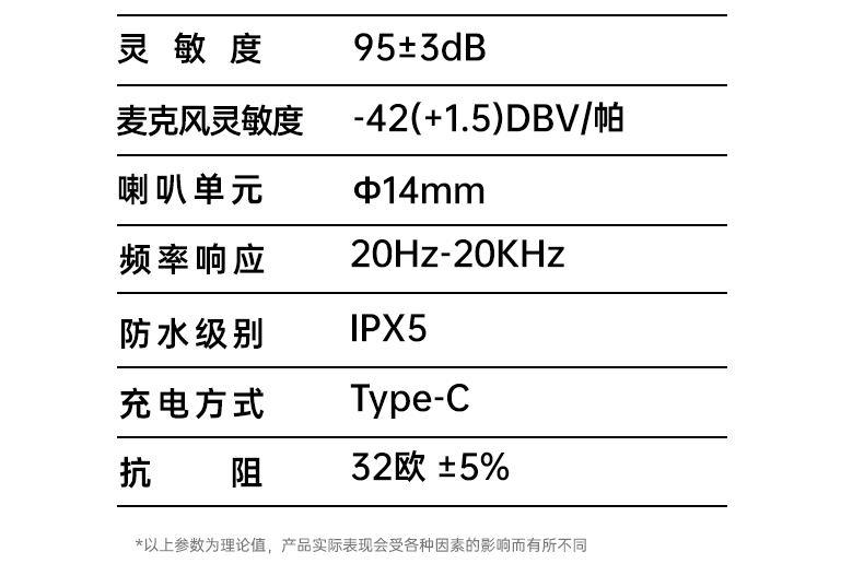 技术参数 蓝牙版本:V5.4 连接设备名:BH-ARC 蓝牙传输距离: 约10 米 通话时间:约8-10小时 待机时间:约180天 充电方式:Type-C 音乐时间:约8-10小时 充电时间:约2小时 耳机容量:50mAh 机仓容量:500mAh 颜色:黑色、肤色 功能特点 ◆高速蓝牙5.4,闪电秒连 无感延迟 ◆液态硅胶,柔和亲肤舒适有弹性,舒适云感佩戴体验 ◆轻量化材料,佩戴稳固,不挑耳朵,舒适贴合 ◆智能电量数显,剩余电量实时显示 ◆双引擎空间音频切感受音源方向和距离变化 ◆从早到晚 澎湃随行,耳机单次续航时间可达8-10小时,配仓可持续使用达40小时。