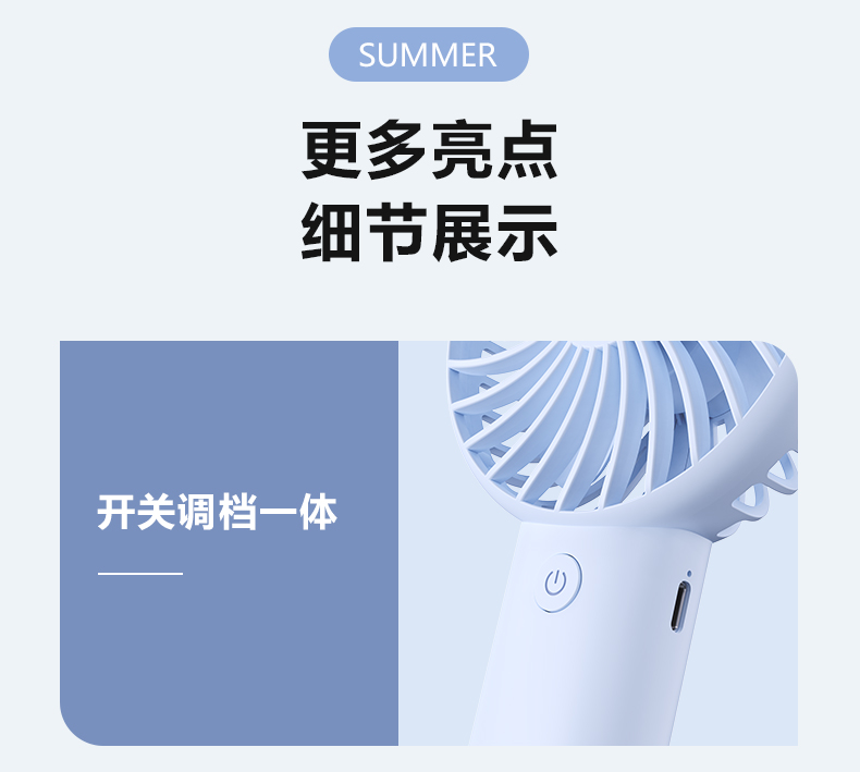 遥里逊桌面便携挂扣手持小风扇USB充电电风扇YLX-2139