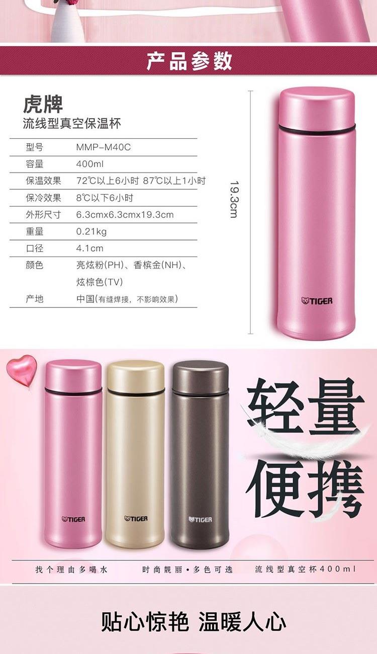 TIGER虎牌不锈钢真空杯保温杯MMP-M40C