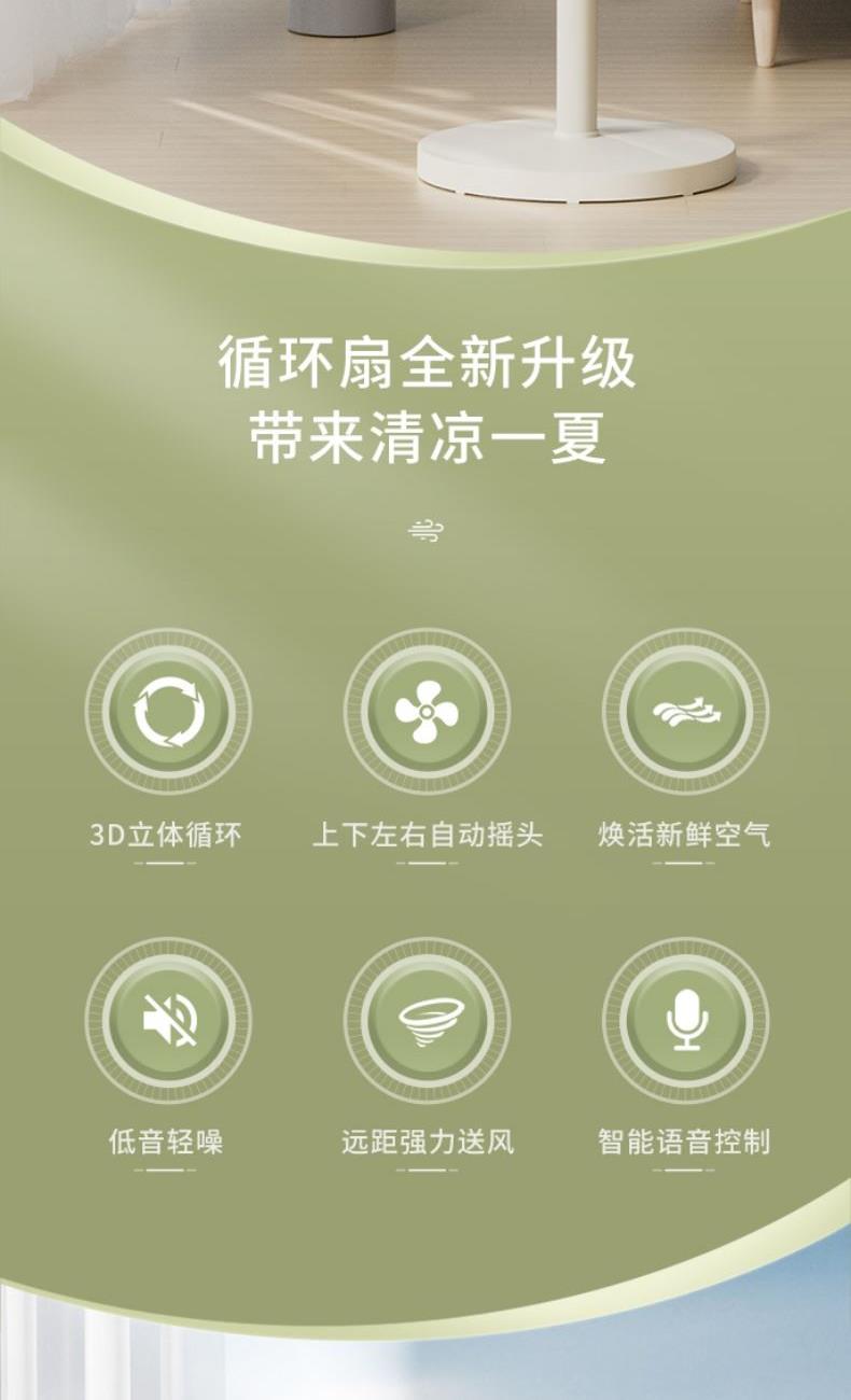 空调搭档,均衡整屋室温度,循环扇搭配空调使用,将冷气均匀的送到室内每个角。
