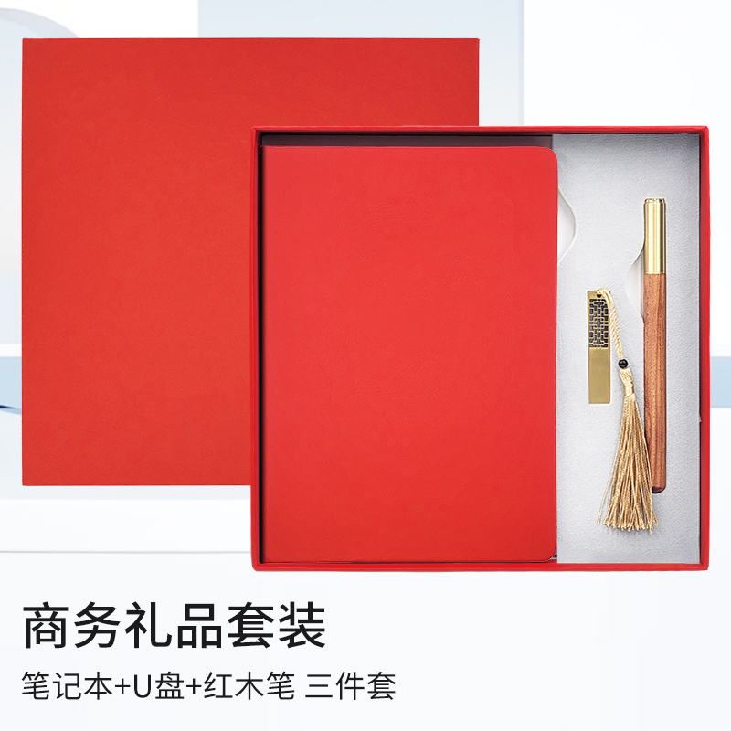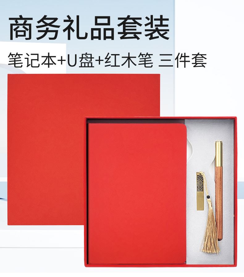 礼盒配置: 1、A5搭扣硬皮PU皮笔记本 2、金属镂空16GU盘 3、黄铜非洲酸枝笔 4、红色包装盒尺寸:228x228x35mm 5、红色手提袋尺寸:270x270x55mm 6、重量:约32kg/箱