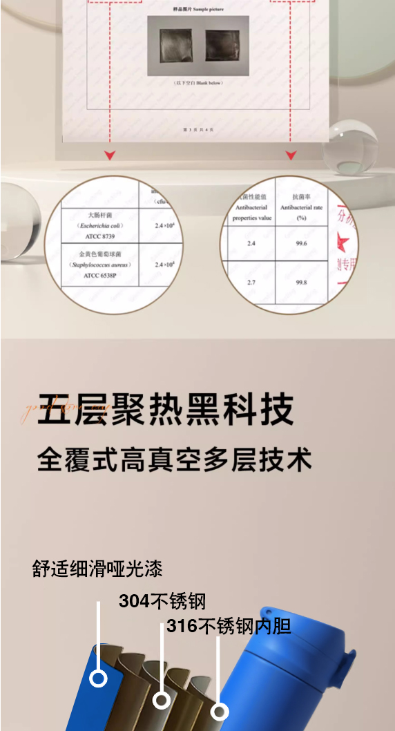 材质:覆钛内胆 +PP +食品级硅胶圈 定制工艺:UV彩印 激光