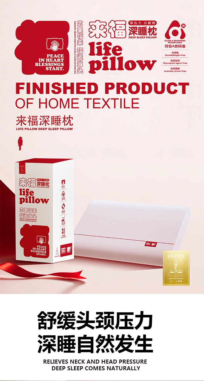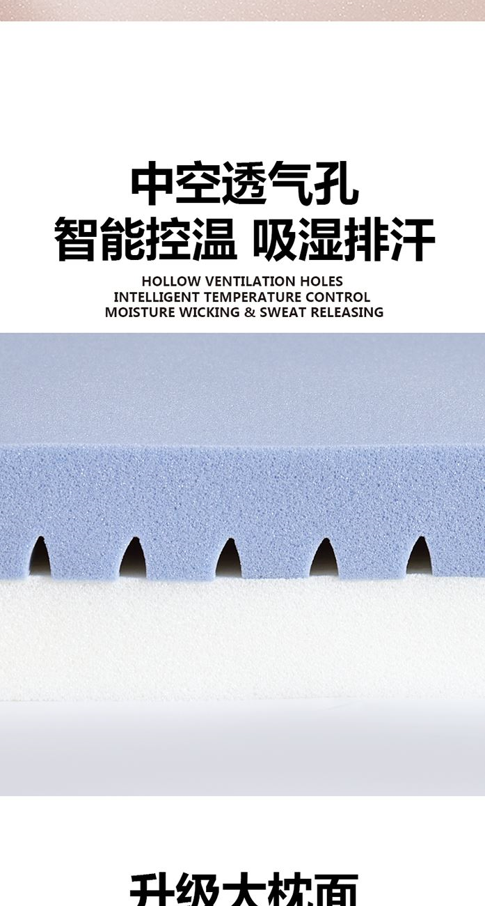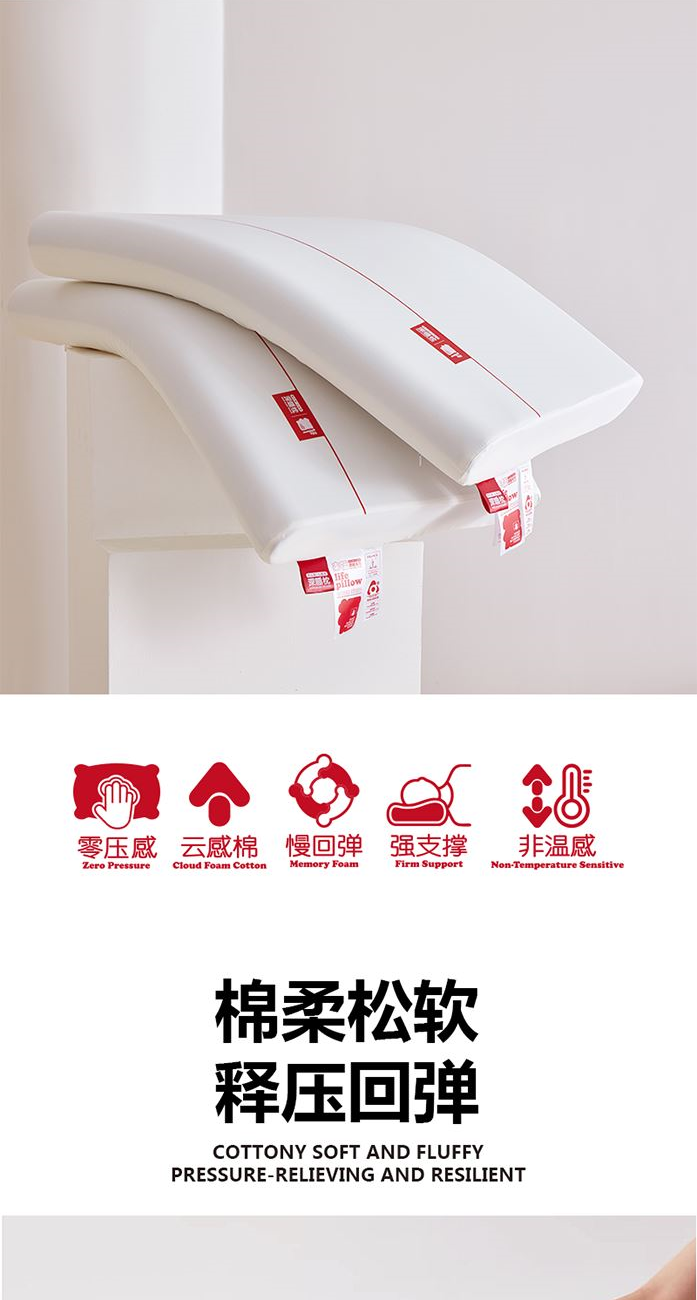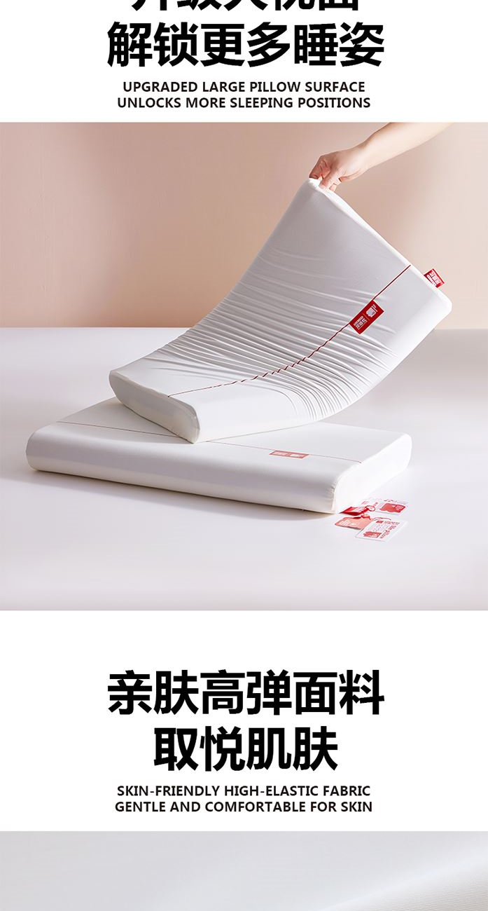面 料:90%涤纶+10%氨纶 填 充:聚氨酯 工 艺:上下双层结构 规 格:40x70x8cm 重 量:900g 1、深睡双层设计,上层包裹层负责无限柔软,下层支撑层负责头颈不陷落。 2、压力分布均匀,即使睡姿变化,也可支撑,没有悬空区,让压力层层消散。 3、“来福”主题设计,芯至福来,传达美好寓意。