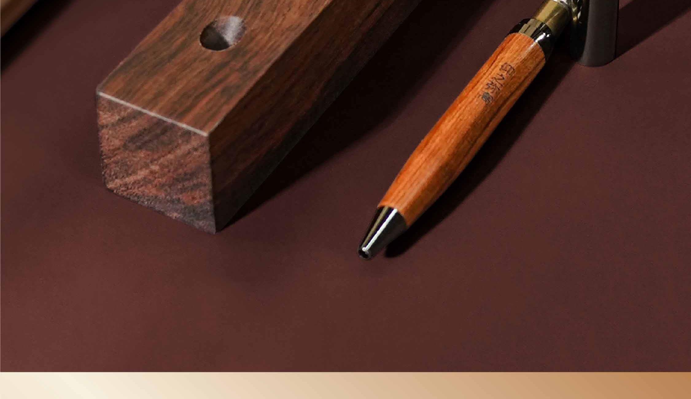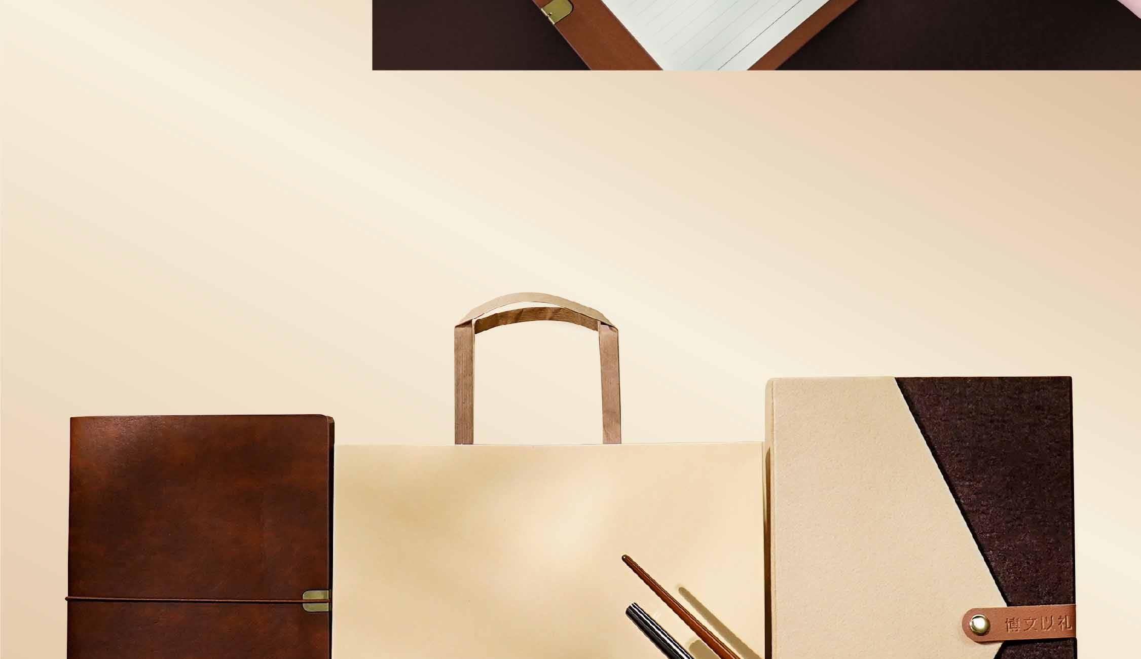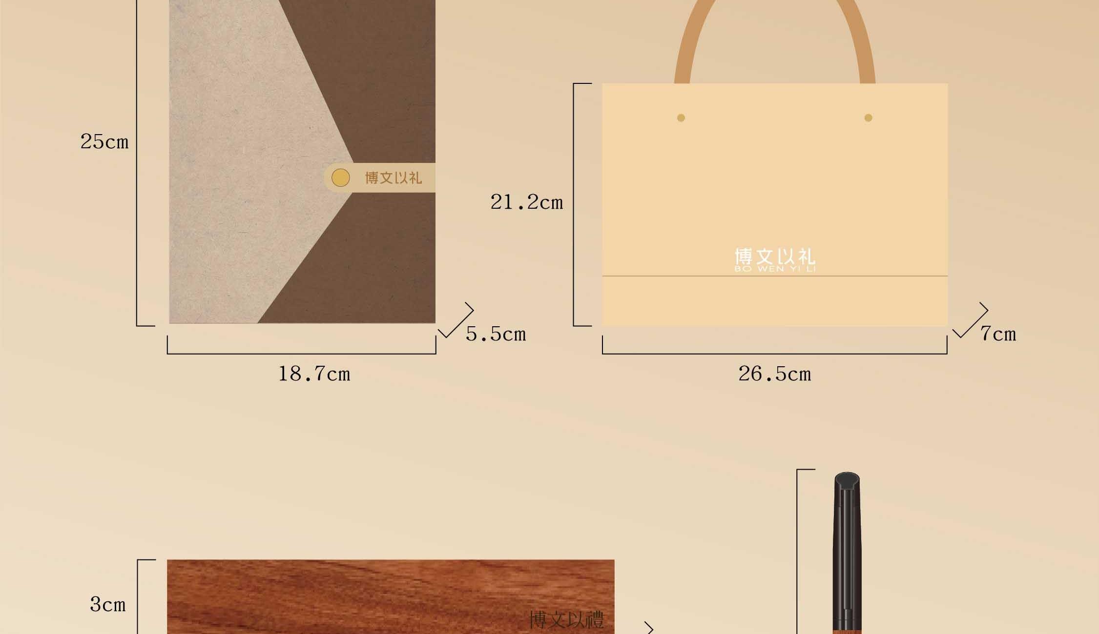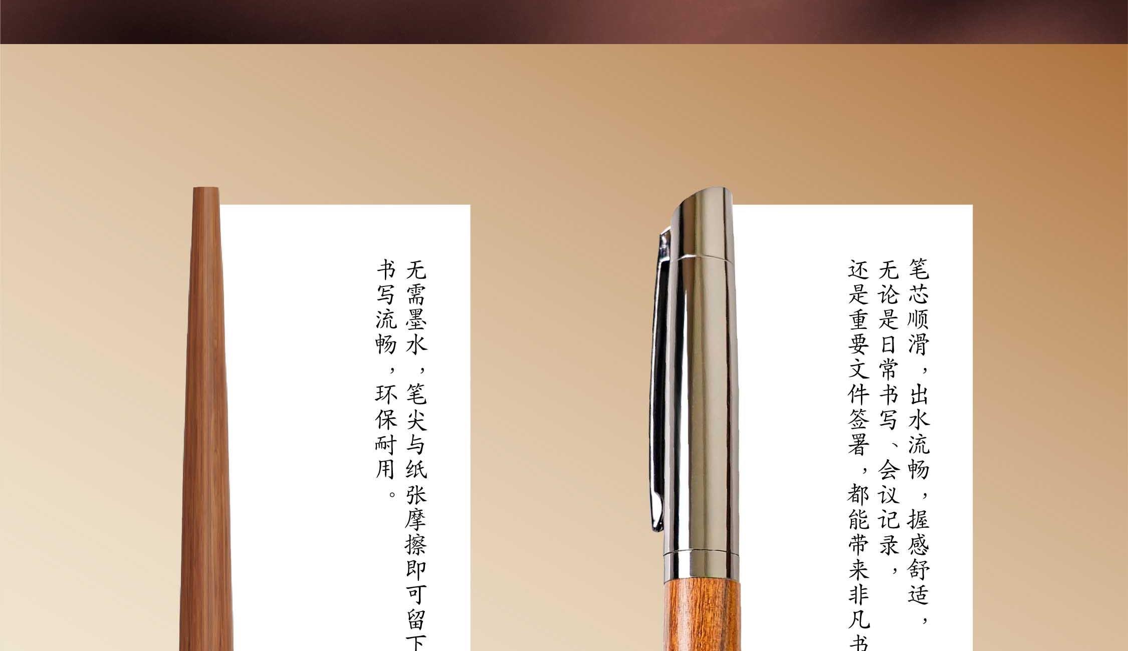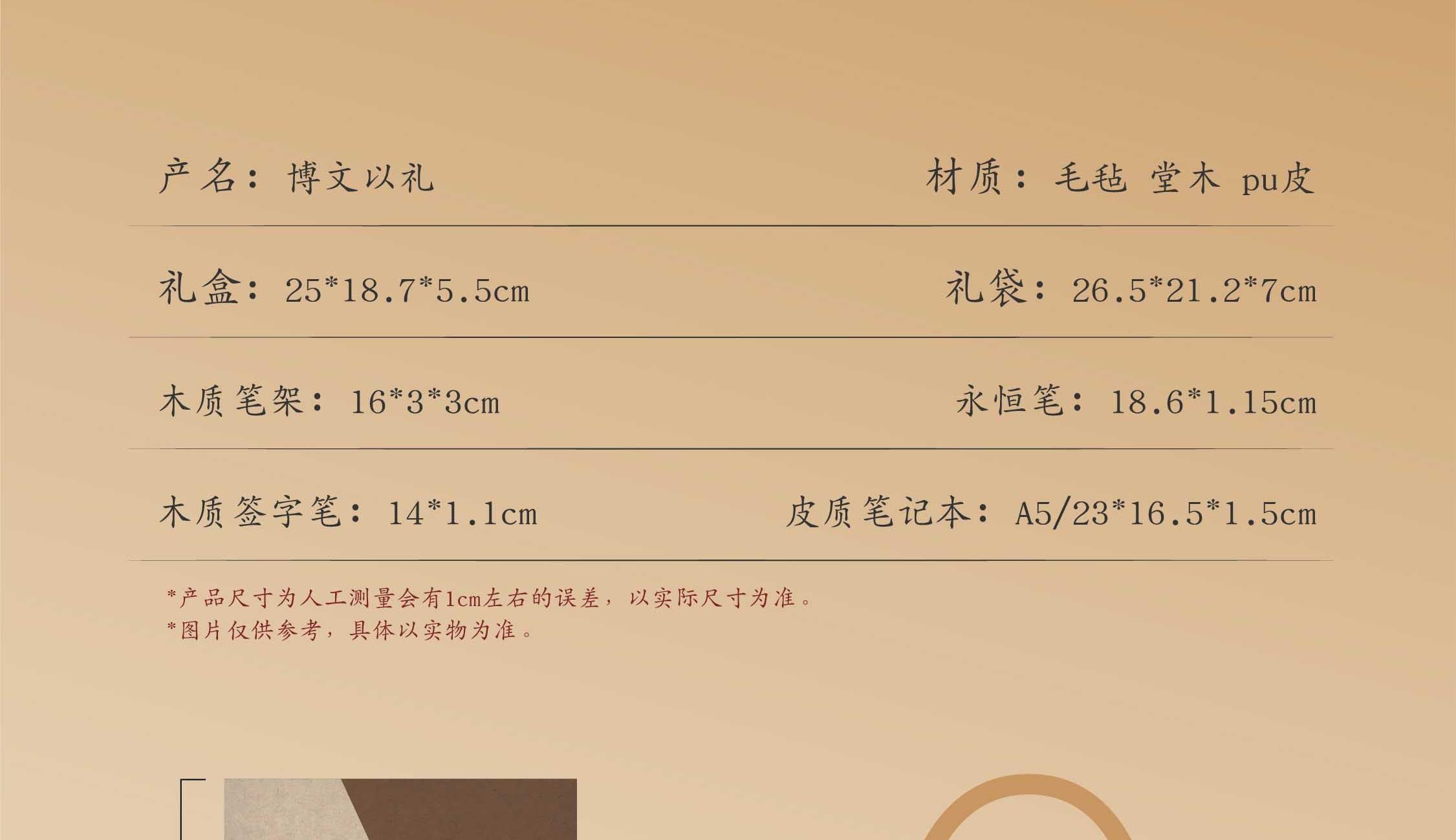 礼盒内容物 ① 永恒笔 ② 木质签字笔 ③ 木质笔架 ④ 皮质笔记本 ⑤ 礼盒 ⑥ 礼袋