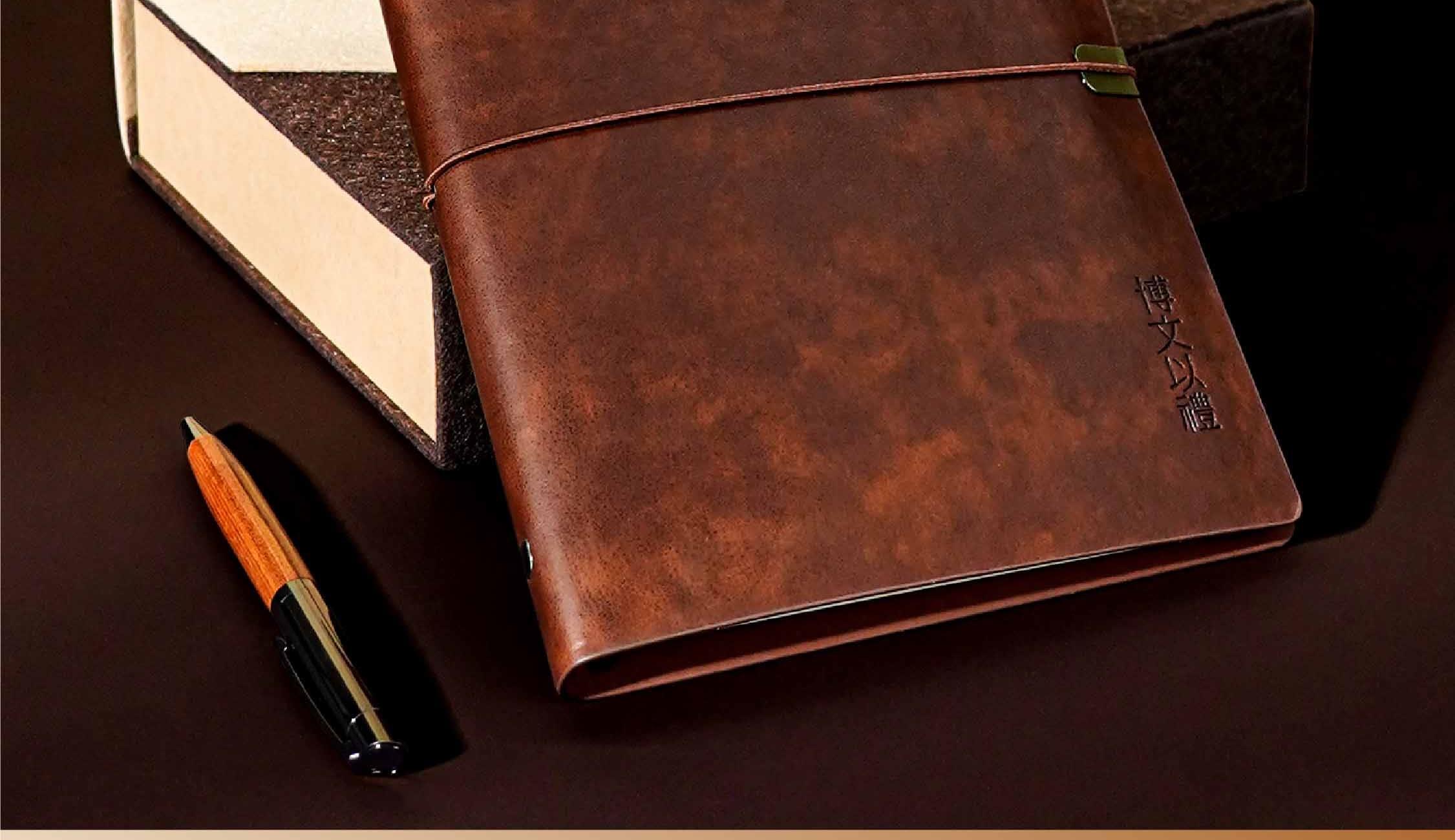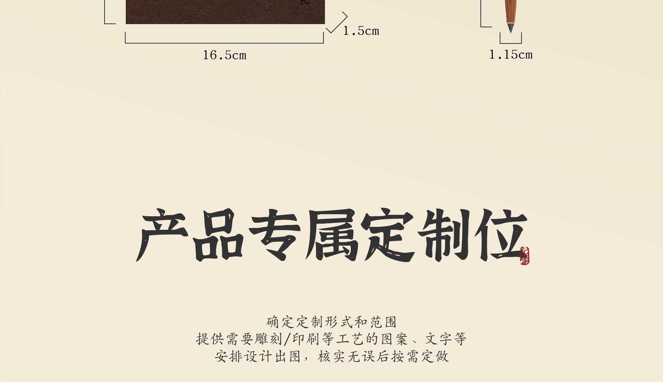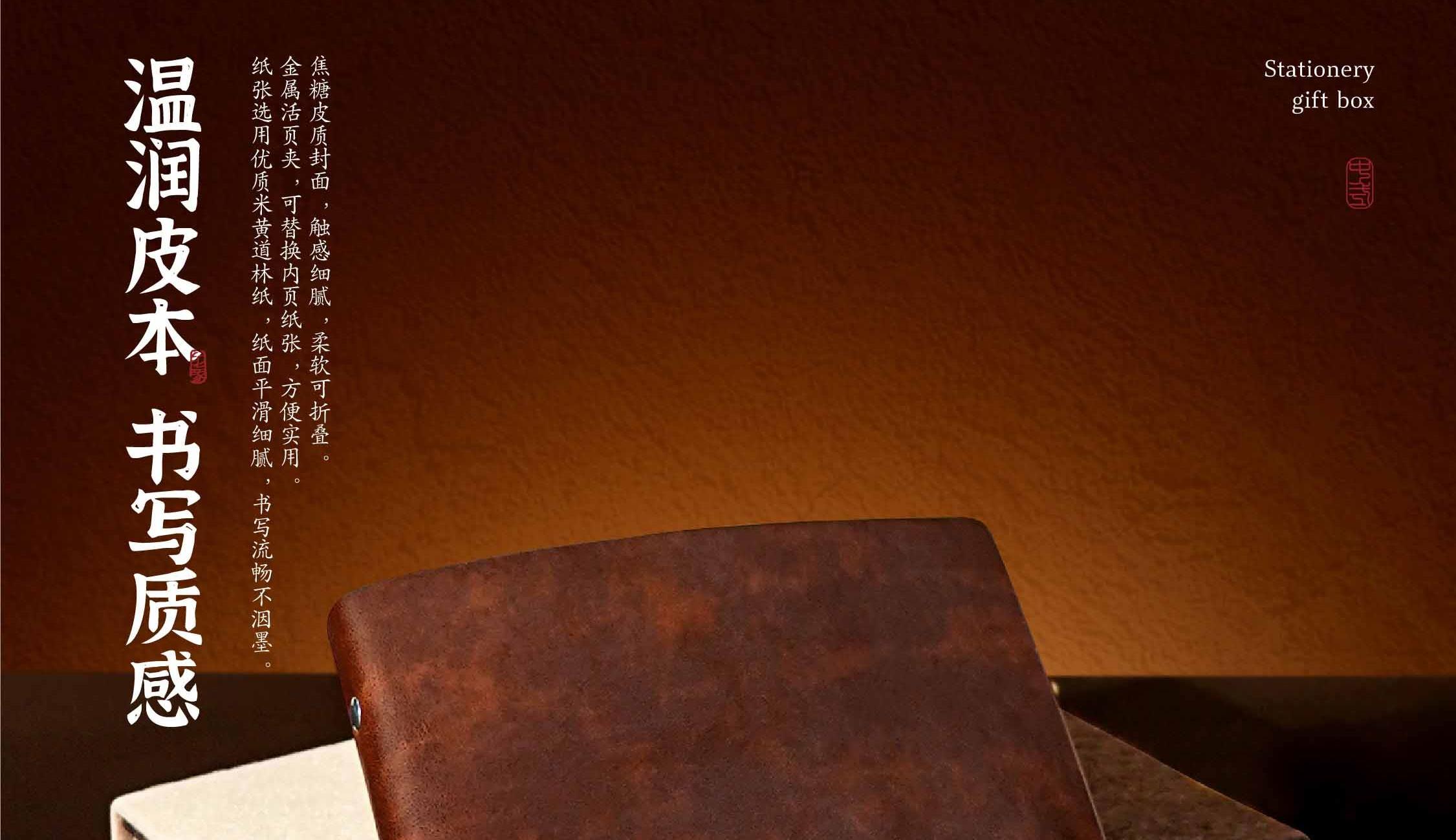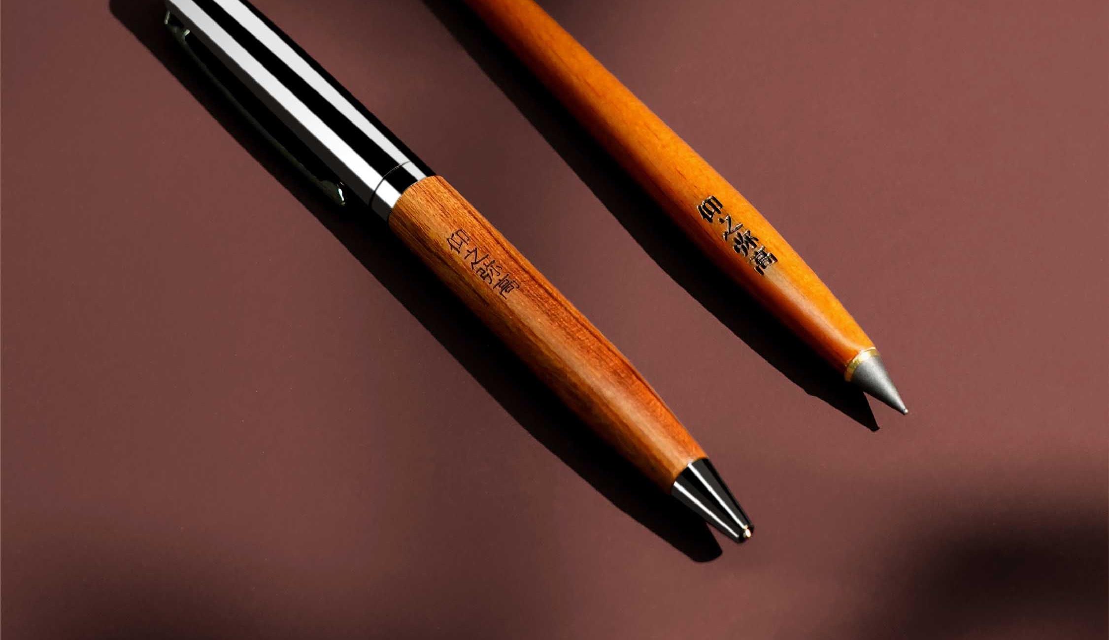 礼盒内容物 ① 永恒笔 ② 木质签字笔 ③ 木质笔架 ④ 皮质笔记本 ⑤ 礼盒 ⑥ 礼袋