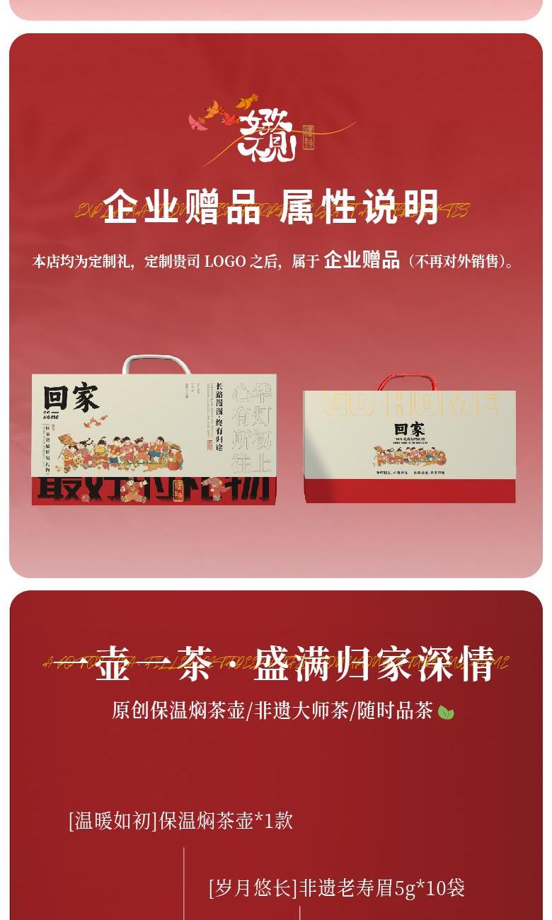 回家节日礼盒 【温暖如初】保温焖茶壶*1个 【岁月悠长】非遗老寿眉5g*10袋