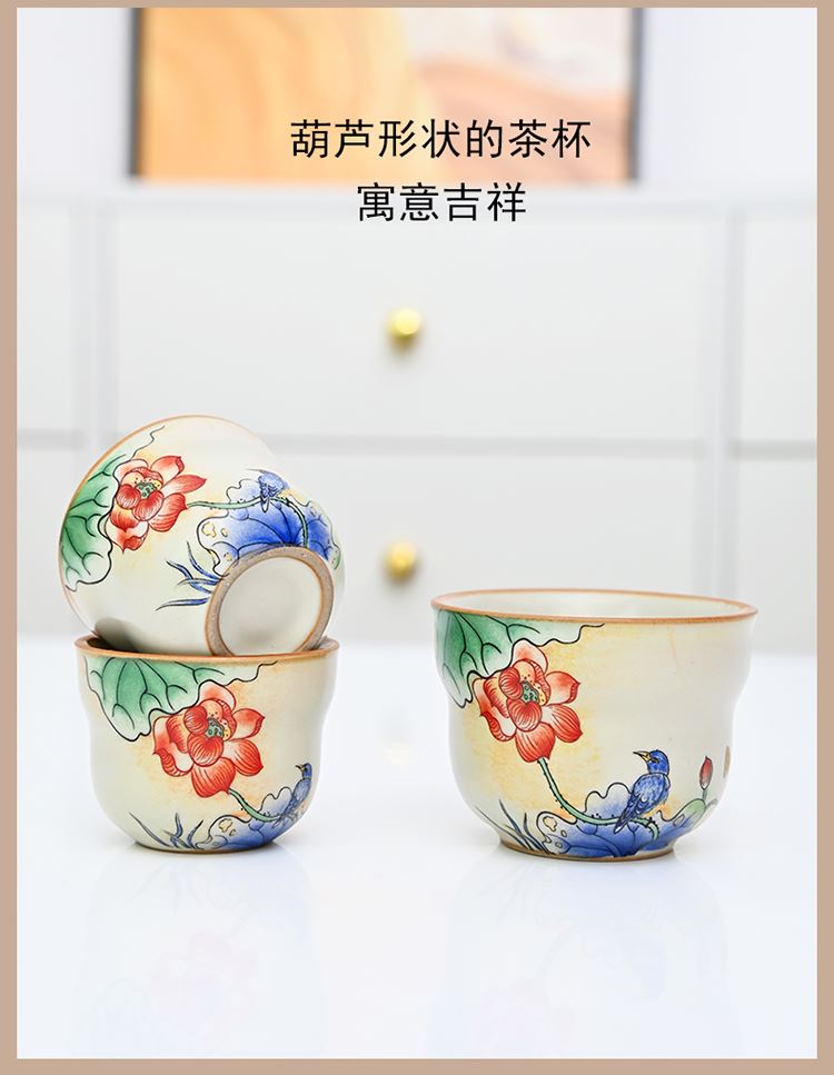壶:10*9厘米190ml 品茗杯:6.4*4.8厘米90ml 茶叶罐:8**7厘米 礼盒:34*24*11厘米 精选高岭土等优质原料,经高温烧制而成,质地致密,气孔率小,吸水率低,不易吸附异味,清洗便捷.手工捏花,造型美丽,寓意美好,搭配礼盒包装,自用赠礼两宜。