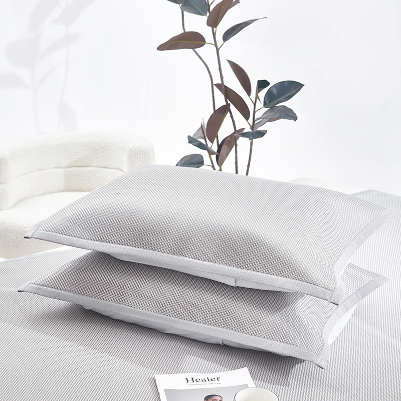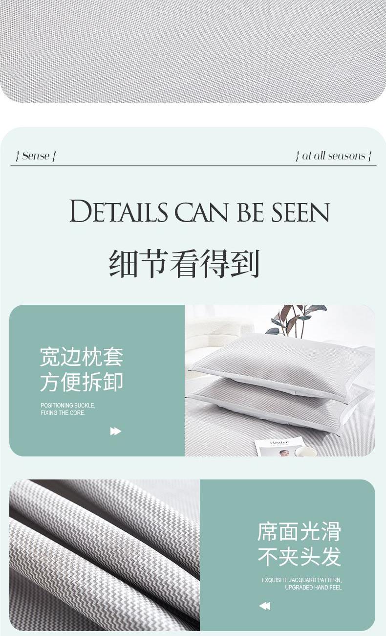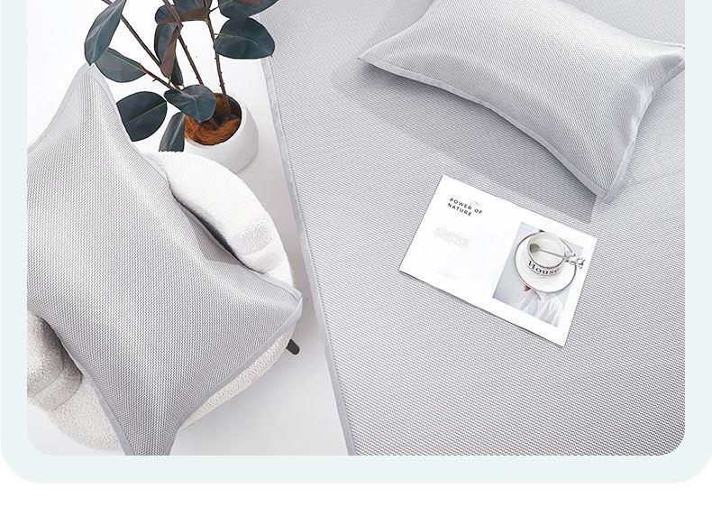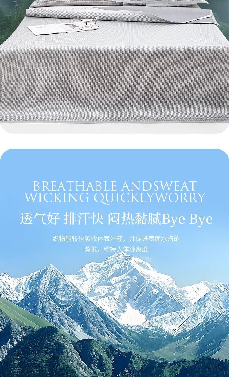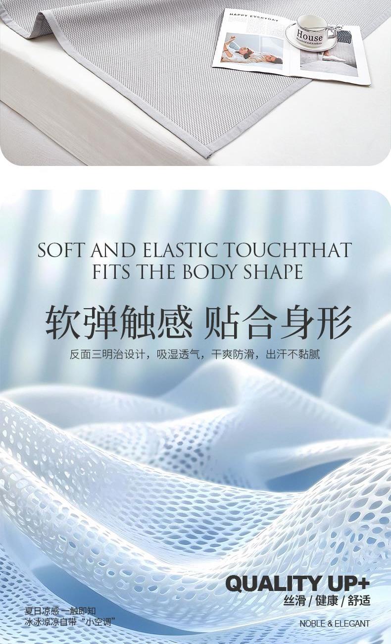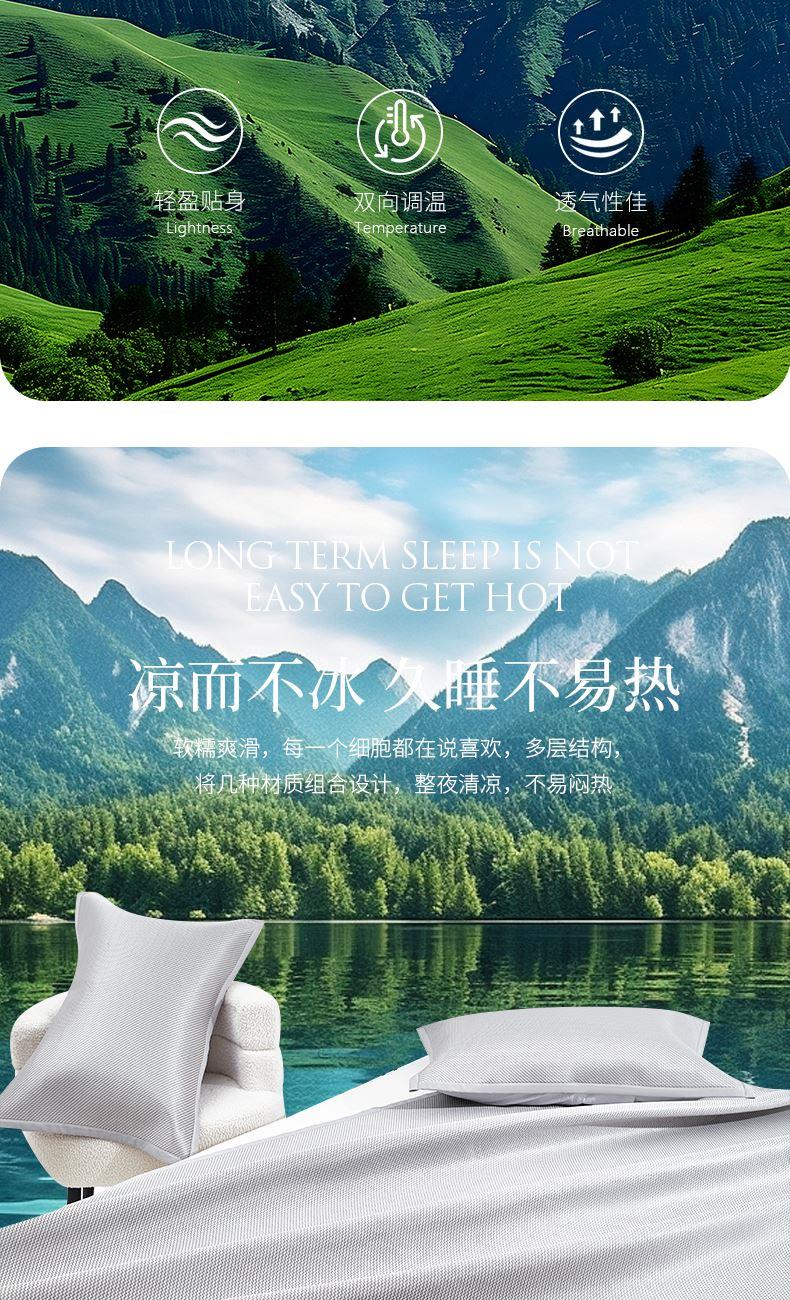 货 号:JX-1397 规 格:席180×198cm (1.8米) 枕席48×74cm×2 材 质:凉感面料+反面三明治 反面三明治设计,丝滑舒适 凉感面料为中空结构,细腻柔滑的触感,干爽透气,吸汗吸湿,凉而不冰,瞬间赶走疲惫、新一代降温放热材质,从而给予很好的热传导性,能增加皮肤的冷感,轻松可水洗。