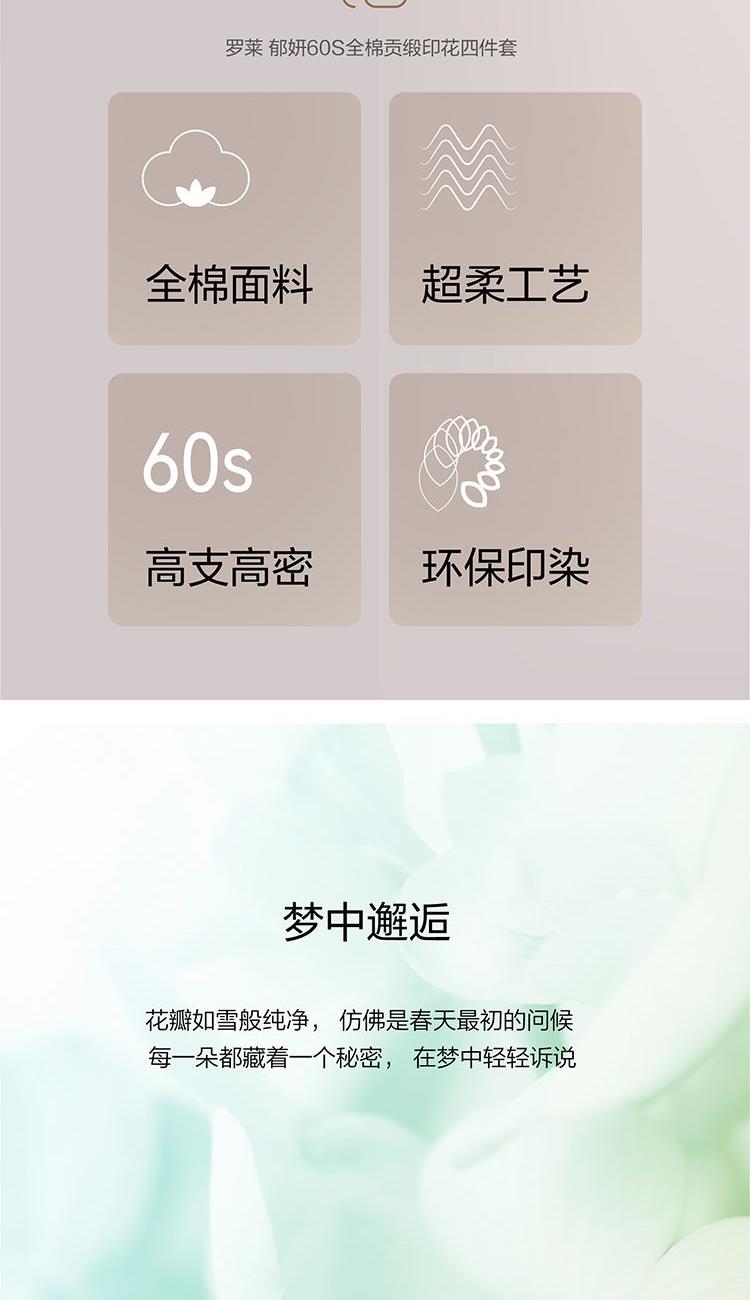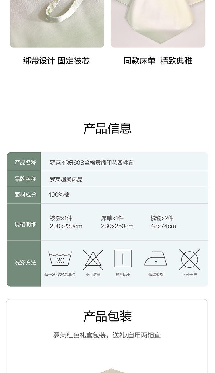 罗莱郁妍60S全棉贡缎印花四件套200*230cm