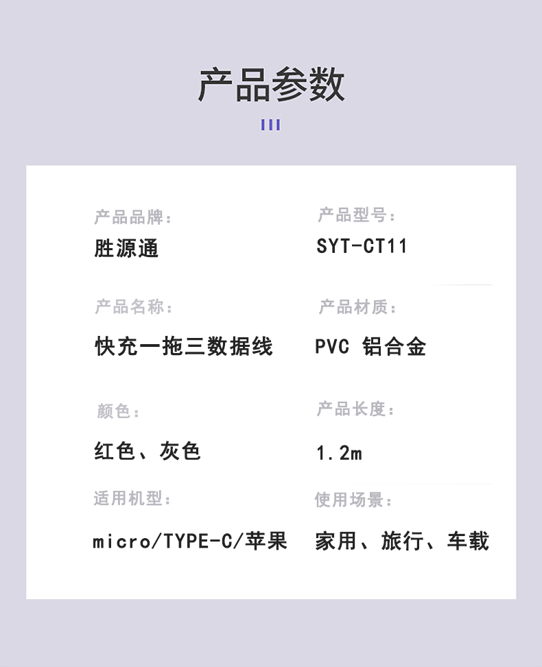 胜源通100W快充一拖三充电线SYT-CT11