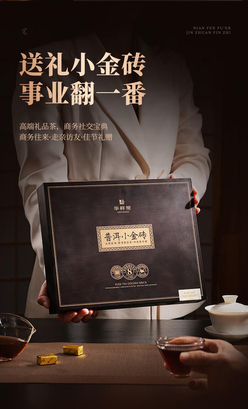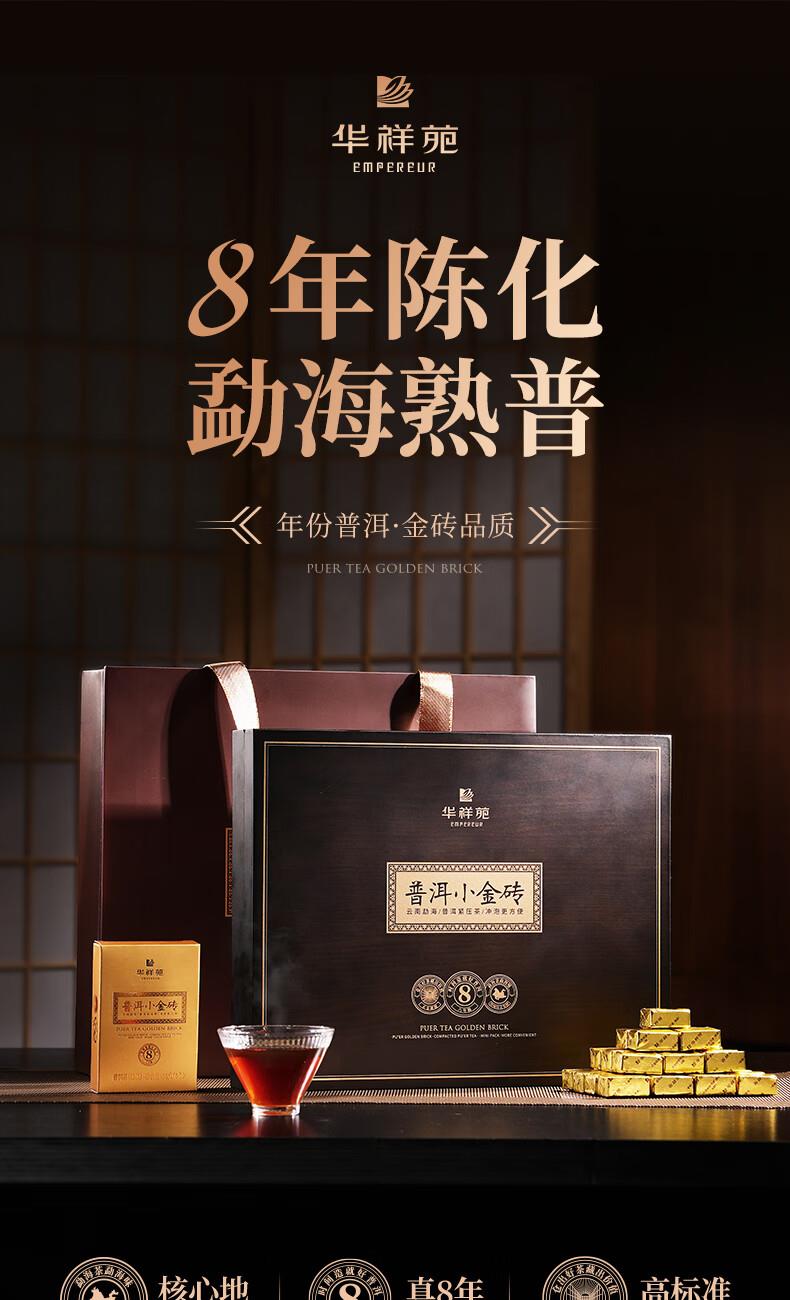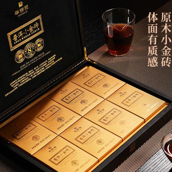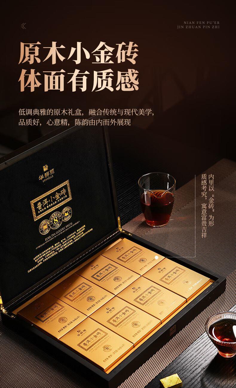 华祥苑-勐海普洱小金砖8年陈熟茶叶木盒商务礼赠春节盒套装自营