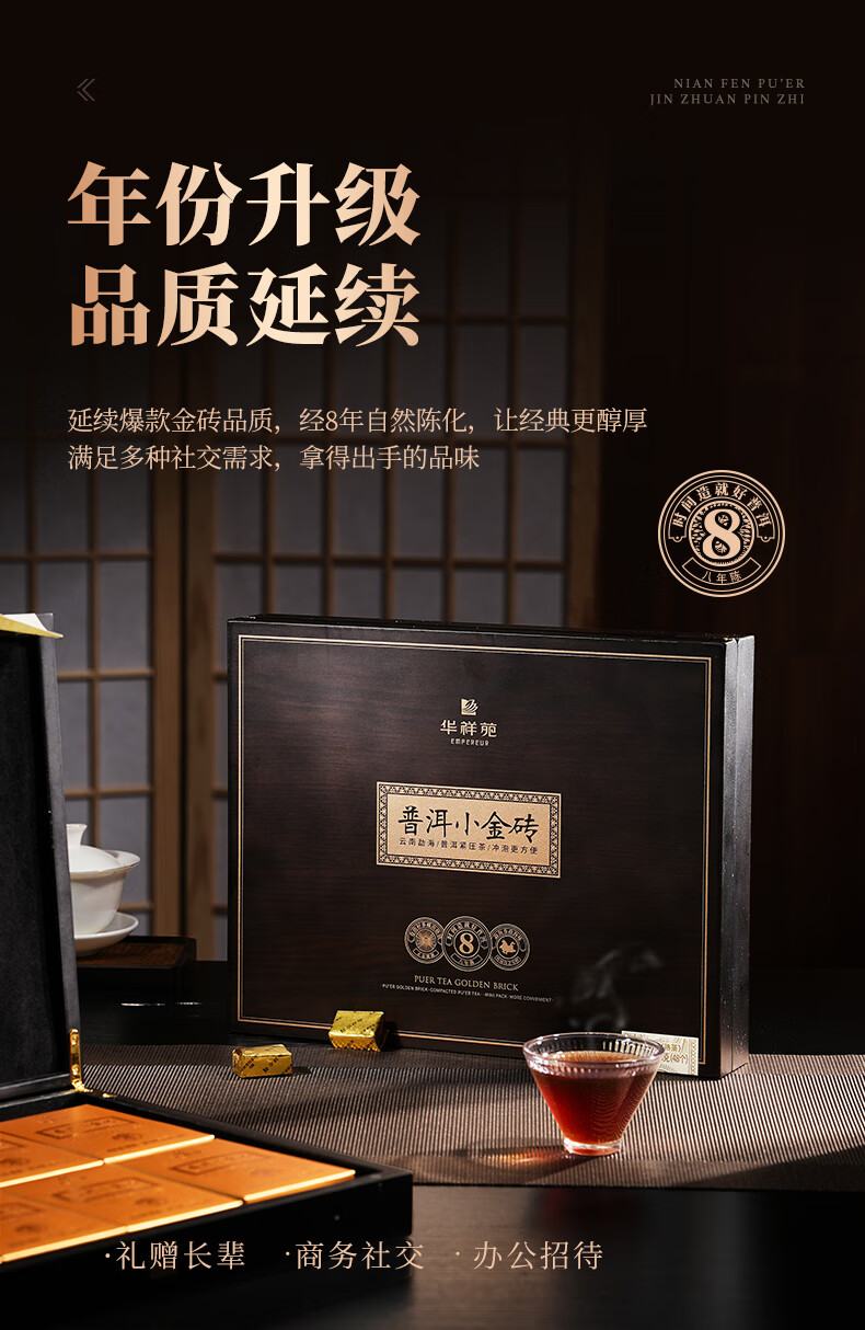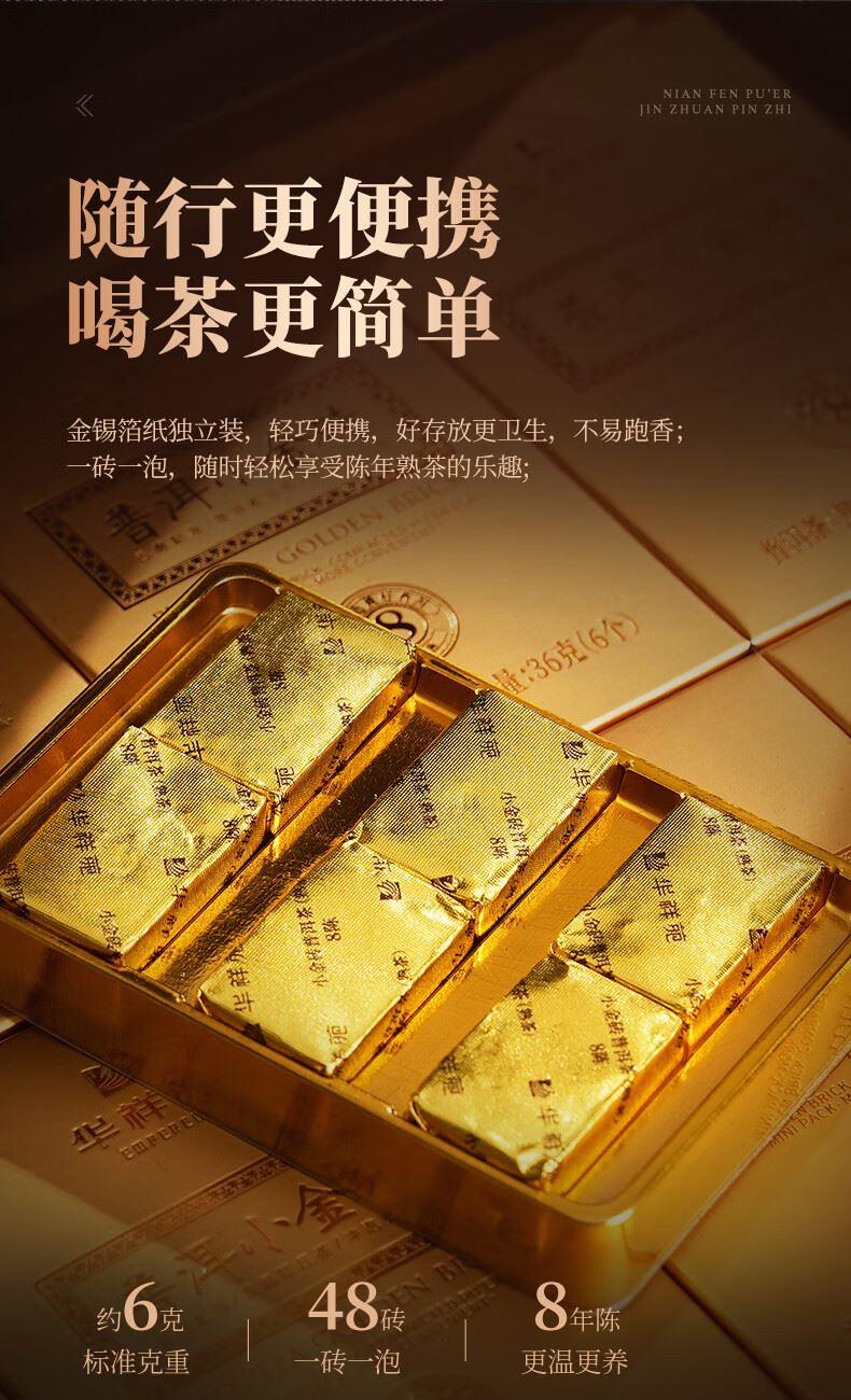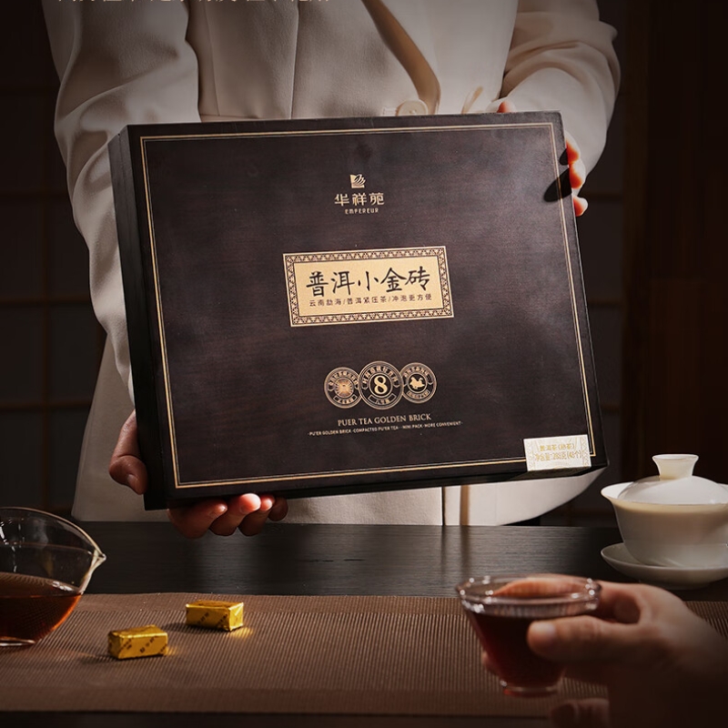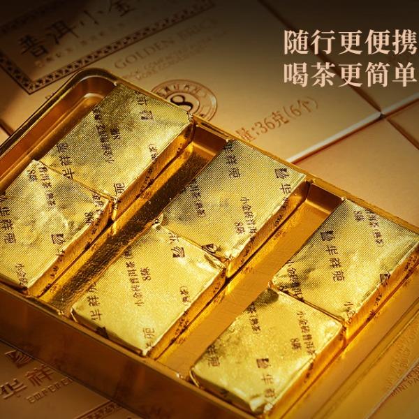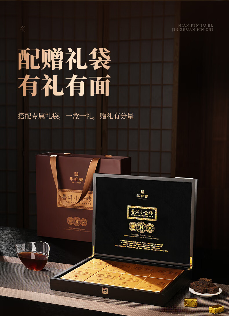 华祥苑-勐海普洱小金砖8年陈熟茶叶木盒商务礼赠春节盒套装自营