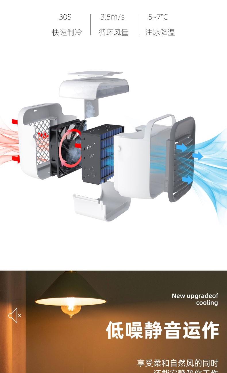 思薇科林桌面风扇制冷超长续航小型充电空调扇便携小风扇