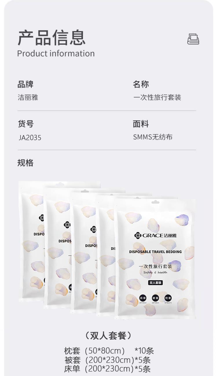 洁丽雅旅行一次性床单被套枕套双人四件套装5包13011515
