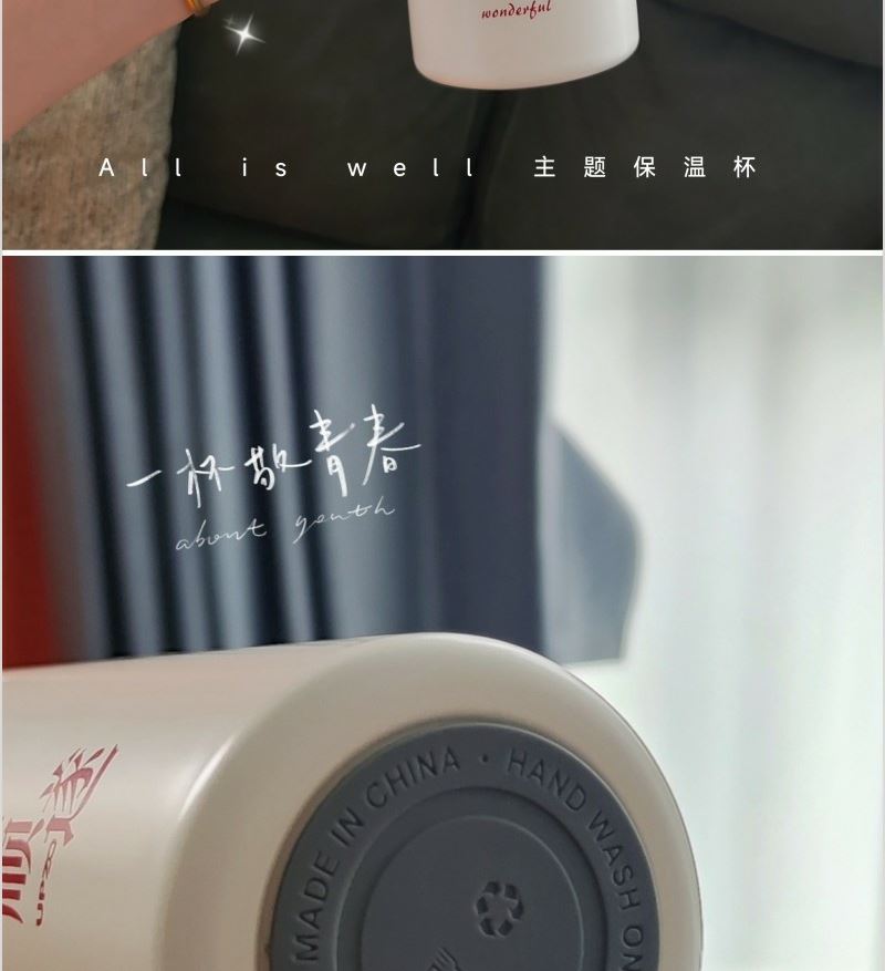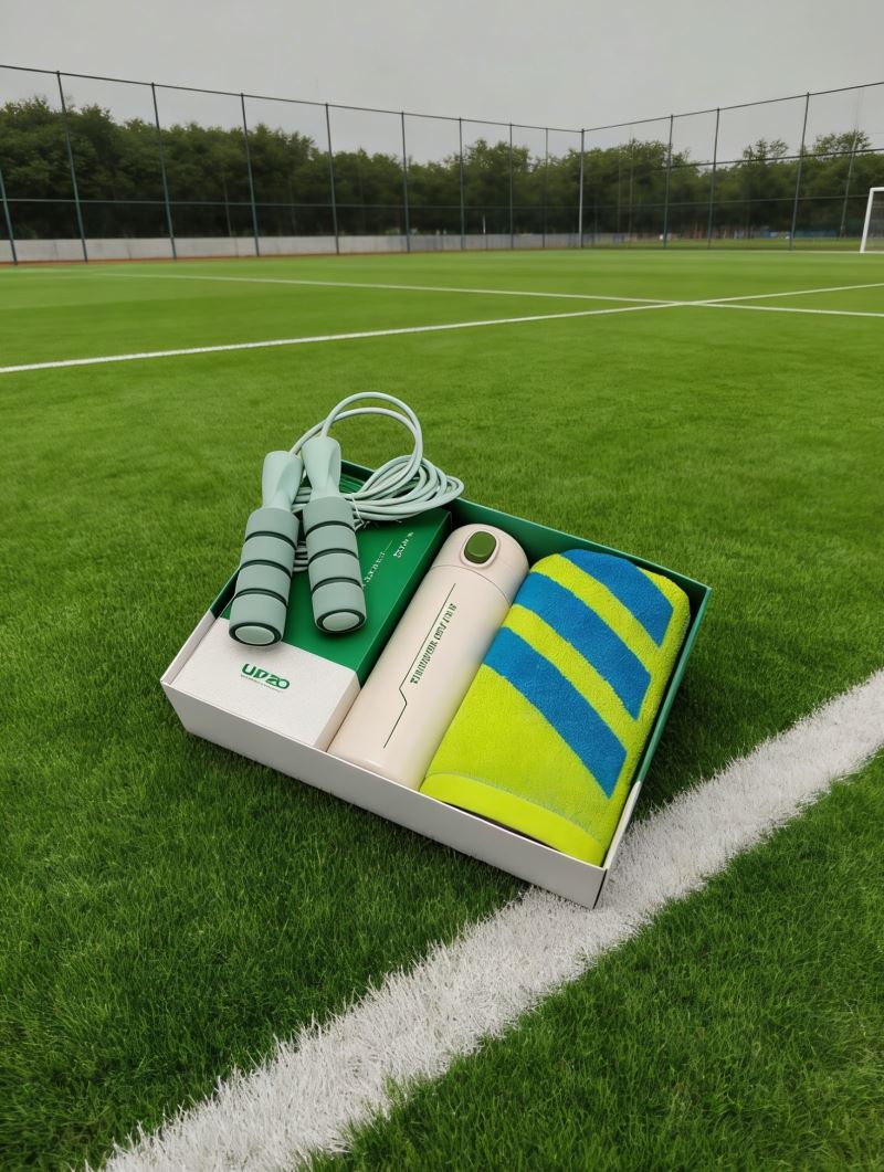 型号: A15B11T1 产品内容 1、 炫彩跳绳×1 (跳绳总长:约2.8米) 产品净重:115克 产品材质:PP/PVC 2、 靓彩保温杯×1 304内胆 PP杯盖 420毫升容量 3、 纯棉提花运动巾×1 105克 25*110CM 精梳棉色织提花工艺 外盒: 29.5×21×7.4cm 纯棉运动巾 时尚外观设计 靓丽配色 提花工艺体现运动与清凉视觉感受 优质精梳棉 适合运动的克重与规格设置 靓彩保温杯融入祝福元素和时尚设计理念,给与保温杯常规功能外更多的靓丽色彩 内胆采用304材质 杯盖优质PP 炫彩跳绳双层手柄设计 体感更好 设计清爽 材质优异