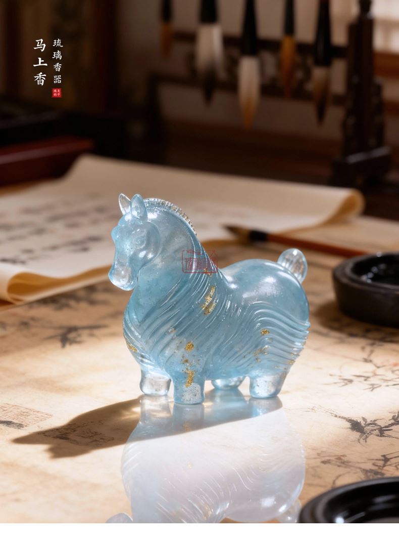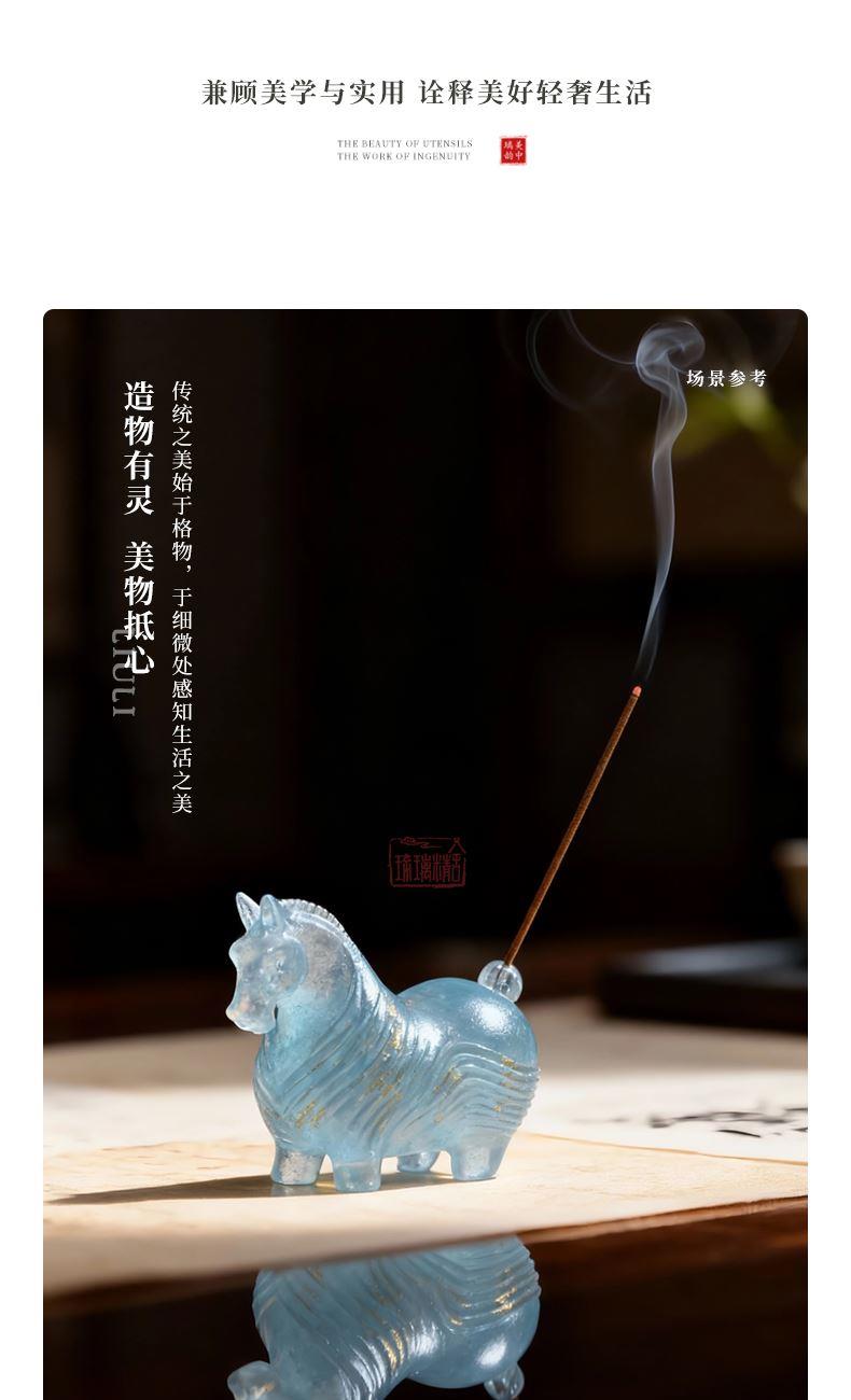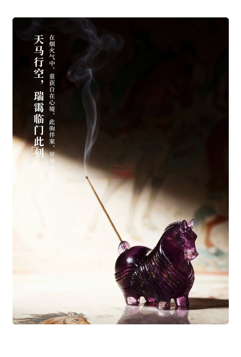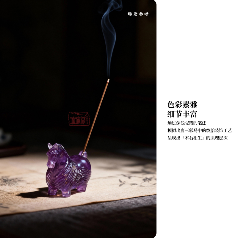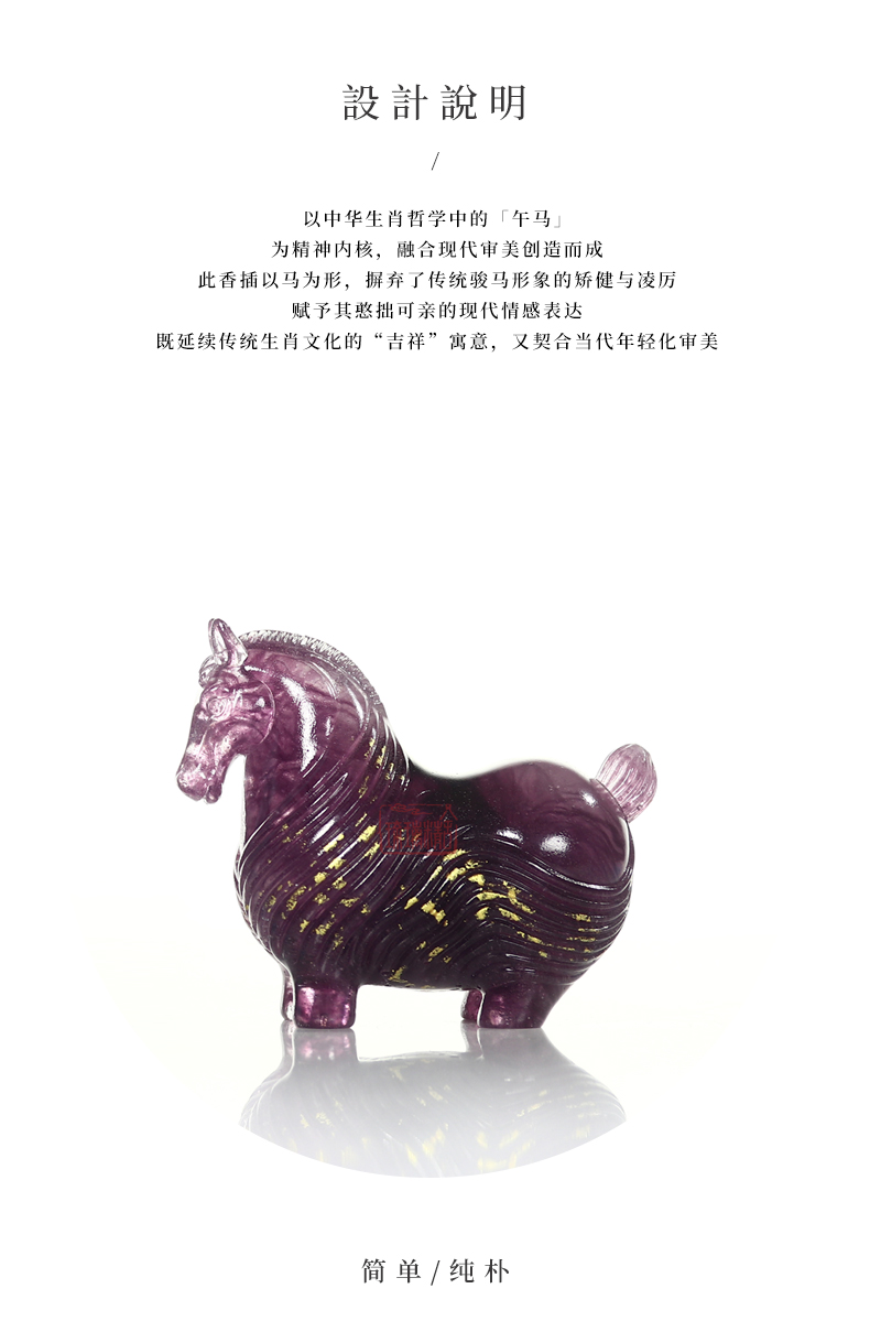 以中华生肖哲学中的「午马」为精神内核,融合现代审美创造而成。此香插以马为形,摒弃了传统骏马形象的矫健与凌厉,赋予其憨拙可亲的现代情感表达,既延续传统生肖文化的吉祥寓意,又契合当代年轻化审美。
