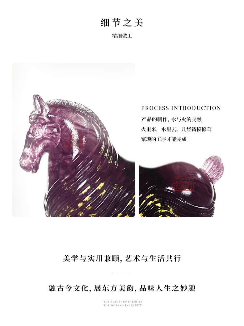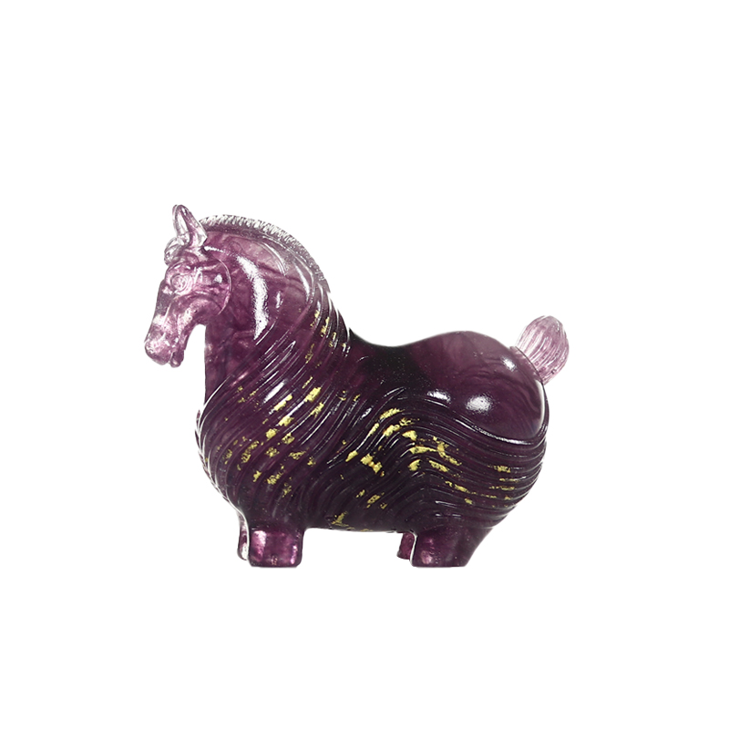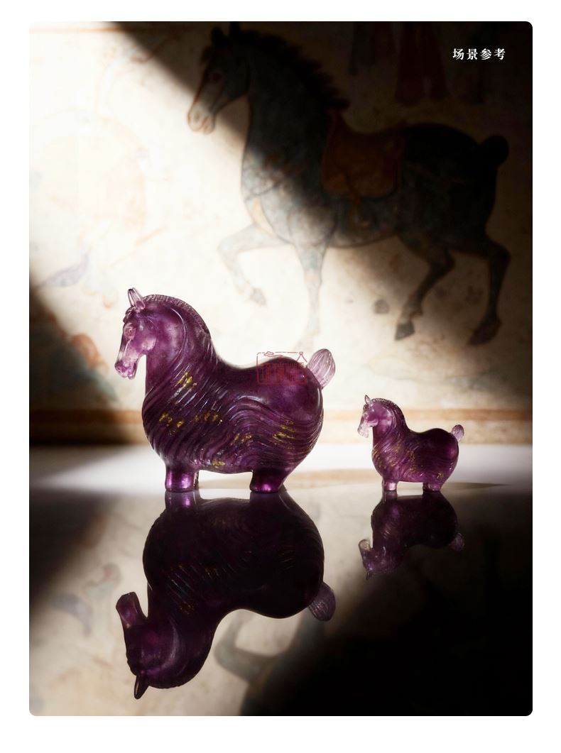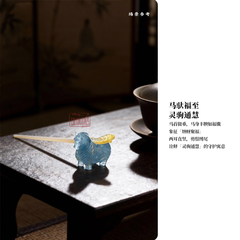 生肖为形:以十二生肖中的马为灵感,参考了铜鎏金唐马的造型,强化体态的丰润与四肢的短拙,通过饱满的曲面与收敛的动态,削弱威严感,增添憨拙之态。整体生动传神,马首微垂,马身丰腴如福囊,象征「纳财聚福」;两耳直竖,剪鬃缚尾,诠释「灵驹通慧」的守护寓意。