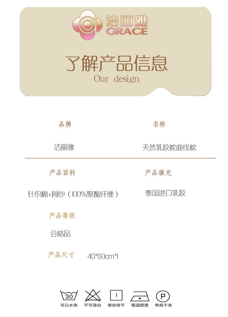 洁丽雅天然乳胶枕曲线枕CP3169