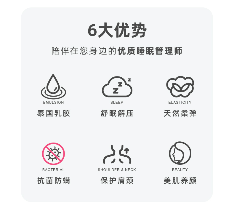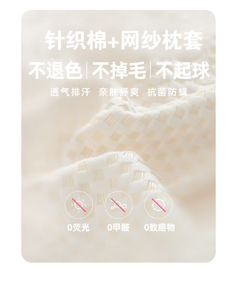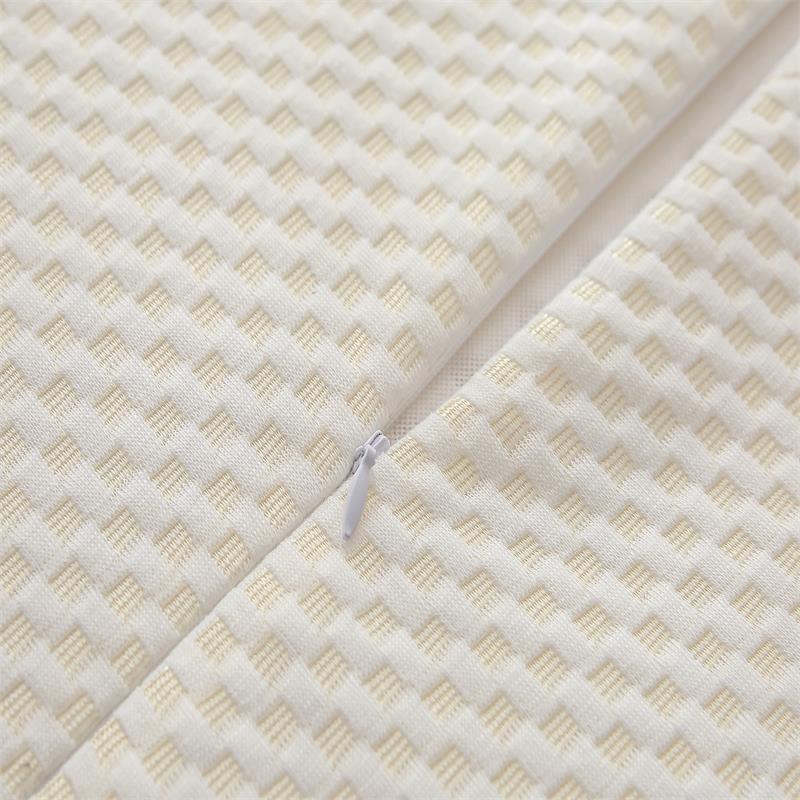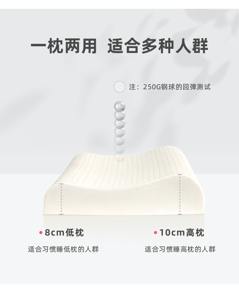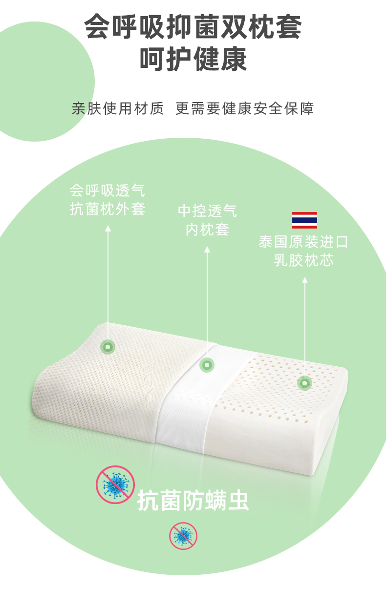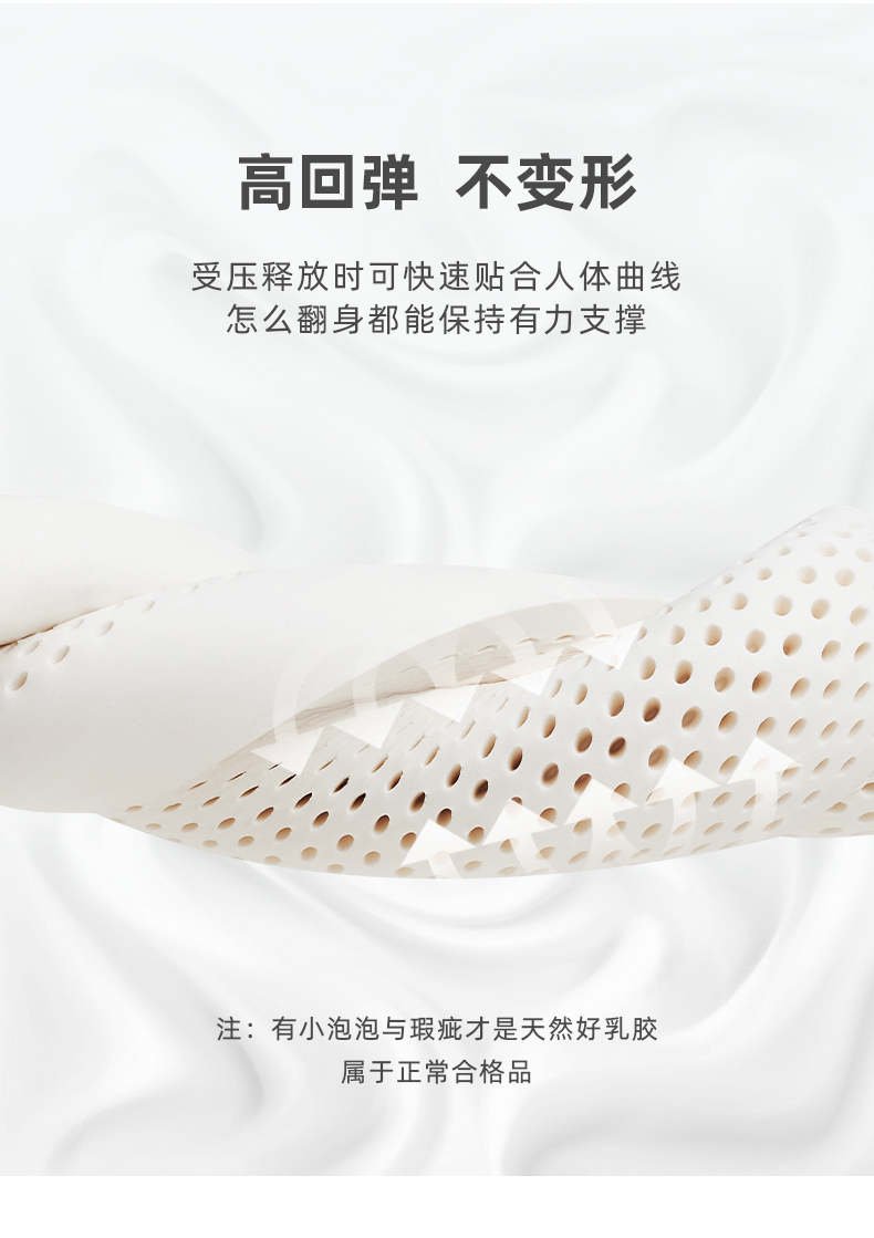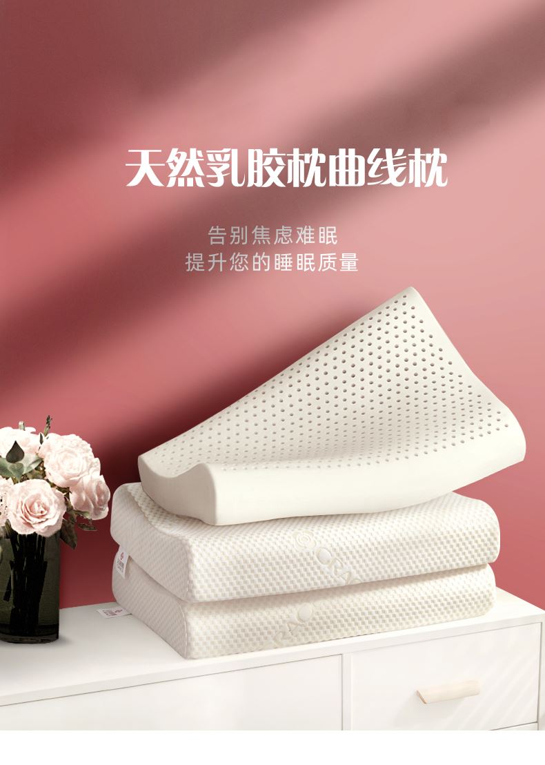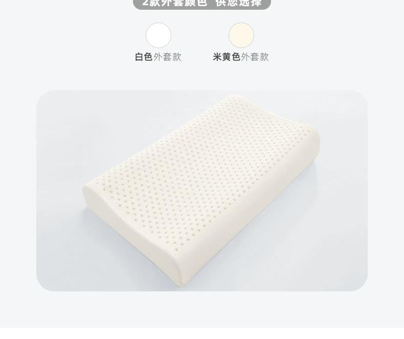 规格:40*60cm 面料:针织棉+网纱 填充:泰国进口乳胶 执行标准:GB/T22843-2009 安全类别:GB18401-2010 B类 1.乳胶是一种天然材质,其原液是直接从橡胶树皮中滴落下来的乳胶汁物理发泡加工一次成型,有天然乳香气息,含量高达90%以上乳胶成分,多纬蜂窝状气孔,较其他枕芯更为舒适,快速散发人体睡眠中余热和湿气。 .2.枕头高弹力,贴合人体脊椎生长曲度,仰睡侧睡都可以,给您更好的承托力
