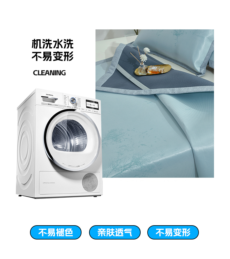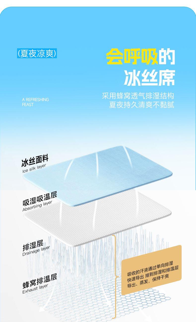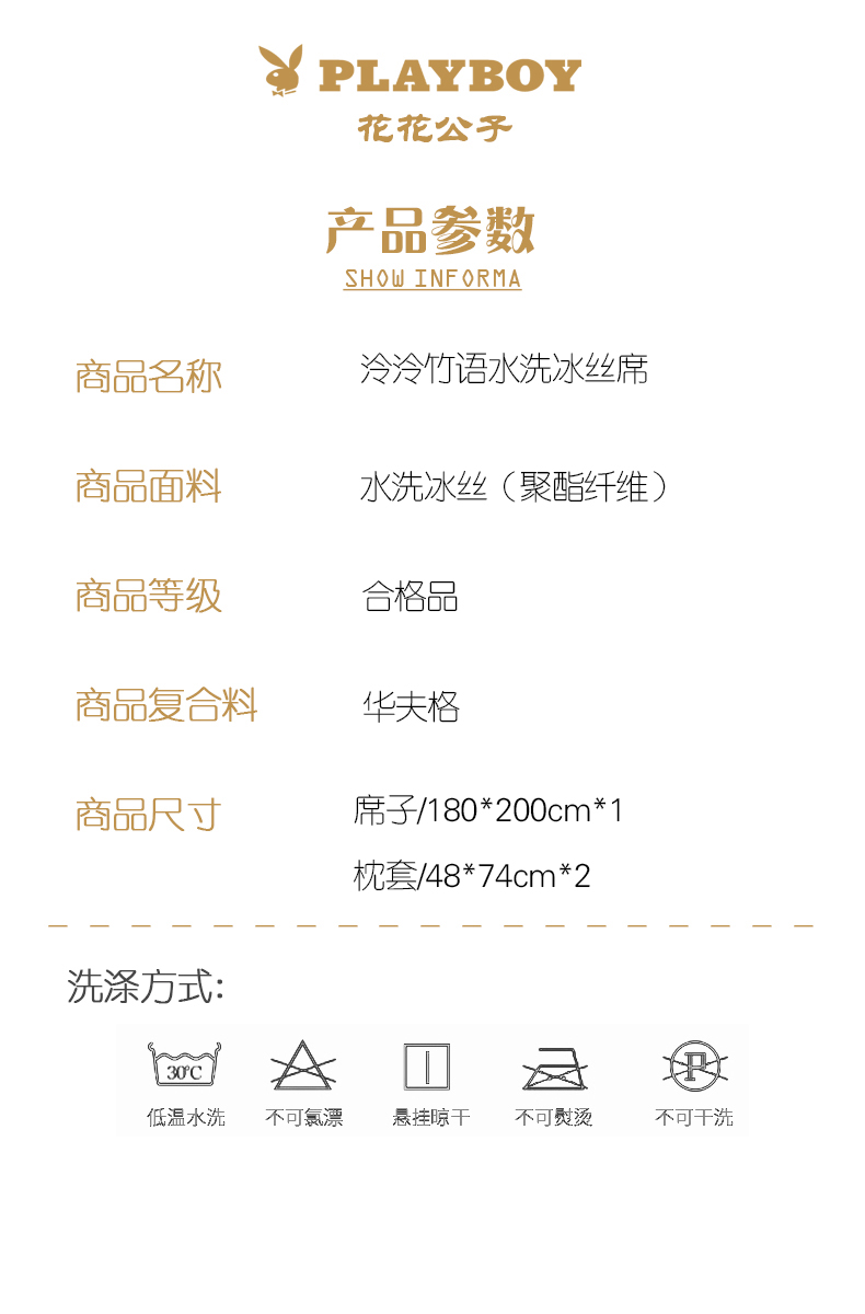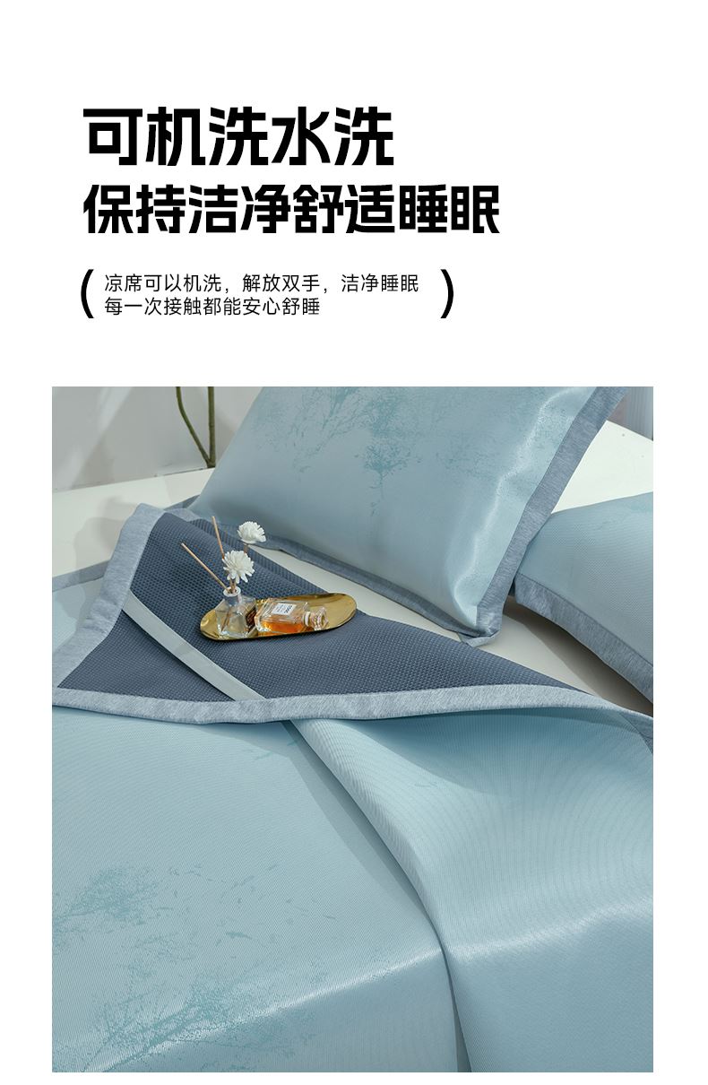 规格:180*200cm 枕套:48*74cm*2 面料:水洗冰丝 复合料:华夫格 执行标准:Q/TDY 01-2016 安全类别:GB18401-2010 B类 1.水洗冰丝严选优质冰丝为原材料,搭配凉感因子,注入凉席材料中温和清凉,适合多种人群使用。 2.经过原料选材、弯曲、统口、抛光、组装、编织等多道工序打磨出匠心凉席。