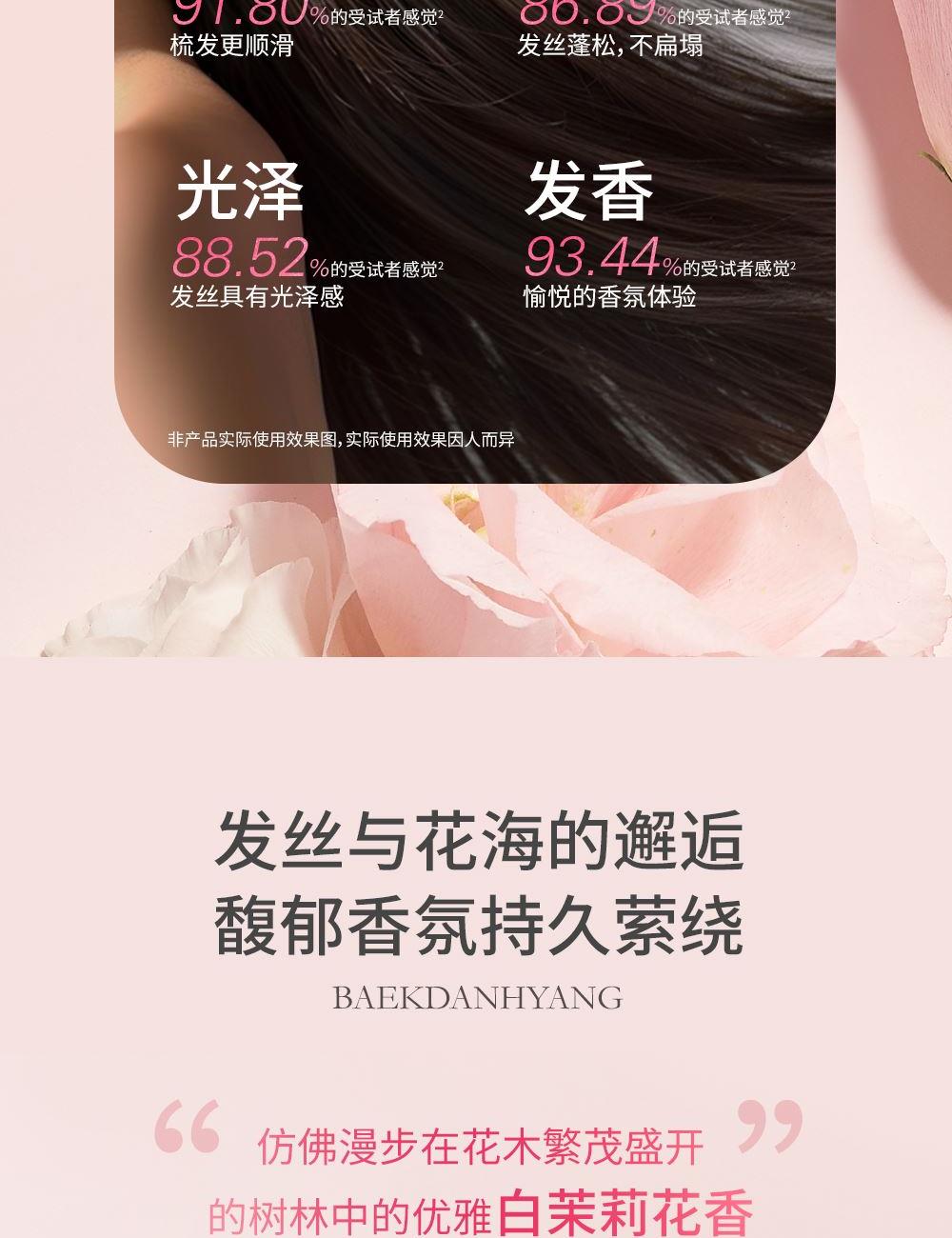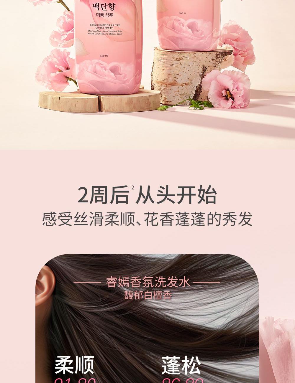 洗发水+护发素:赋予东方神韵的山茶的营养,塑造迷人秀发,散发清新雅致的白檀香香气,水润盈亮秀发 通过LG生活健康香精研究的不懈努力,利用香乳化技术,加强香味的持久性,使得花香萦绕发间。 产品功效:强韧发根 呵护烫发 葆受损发质 头皮清爽。 包装设计:采用的是:按压式的设计,方便取量,避免浪费,而且他还设计一个扣锁,可以避免漏出。 香皂:清洁,去角质,控油,源萃自然,添加了植物油皂基,令肌肤安心