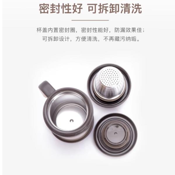 颜 色:BK黑色 GL金色 容 量:500毫升 保温效力:53℃以上/6小时 保冷效力:13C以下(6小时) 外管材质:304不锈钢 内管材质:304不锈钢 密封圈:食品级硅胶 茶漏材质:304不锈钢+食品级PP+食品级硅胶 属性:商务办公