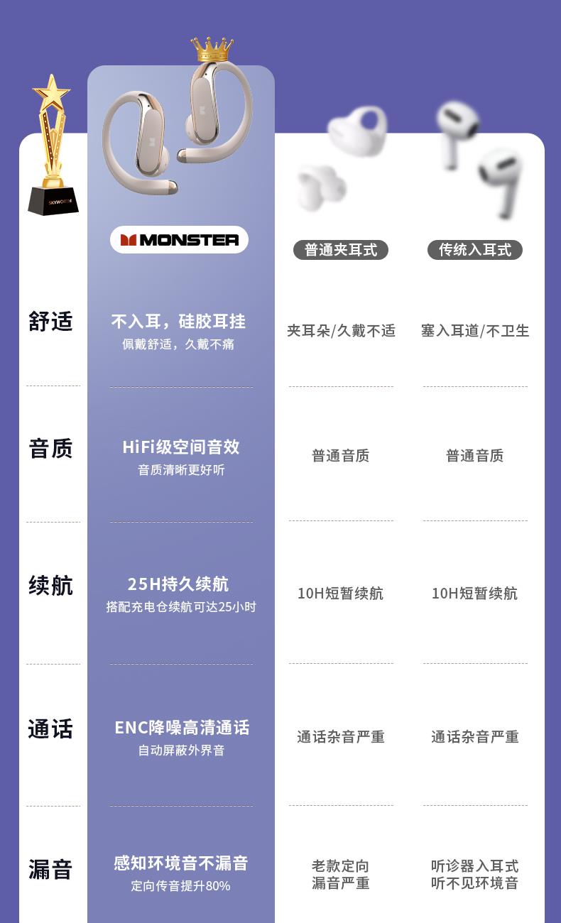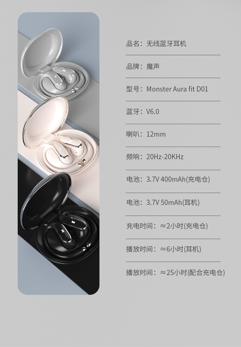 魔声MONSTER小度AI智能中英翻译开放式蓝牙耳机D01 魔声MONSTER小度AI智能中英翻译开放式蓝牙耳机D01