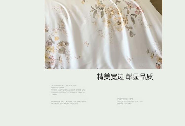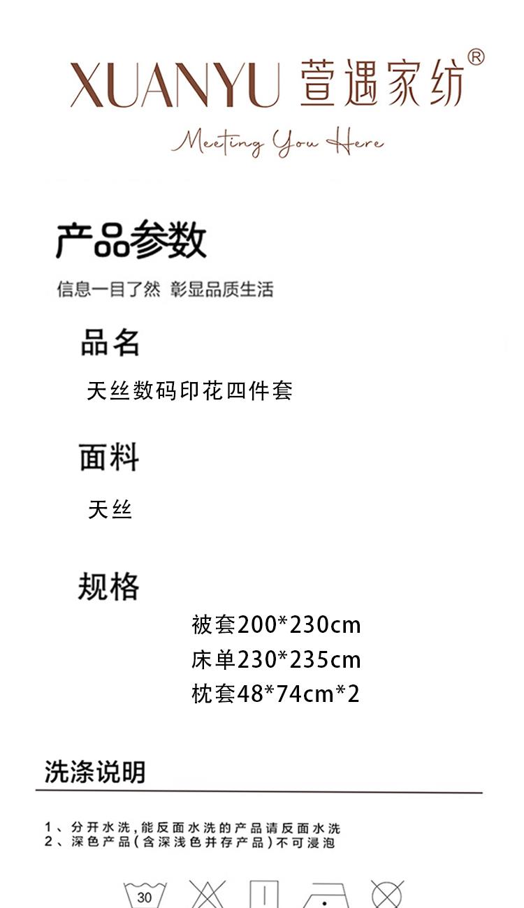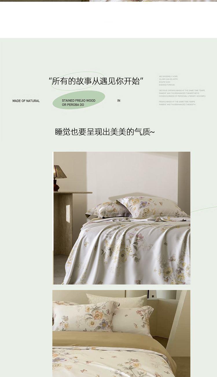 被套:200*230cm 床单:235*240cm 枕套:48*74cm*2 面料:天丝 执行标准:GB/T22796-2021 安全类别:GB18401-2010 B类 1.臻选纯棉色织面料,印染工艺采用活性印染工艺,不起球,不褪色,极具柔软性,在纺纱过程中,增加了精致梳理的程序,疏去软短的纤维,剔除棉花种的杂质,以制造出平滑的纱线,让棉花更有韧性,使人干到柔软。 2.纯棉纤维具有良好的保湿型,透气性能好,使用感觉温