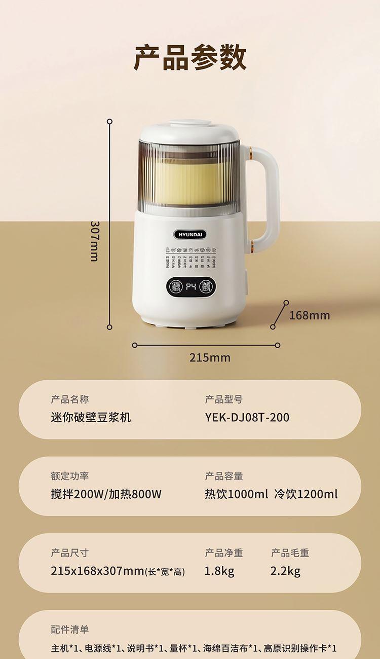 HYUNDAI迷你破壁豆浆机YEK-DJ08T-200 HYUNDAI迷你破壁豆浆机YEK-DJ08T-200