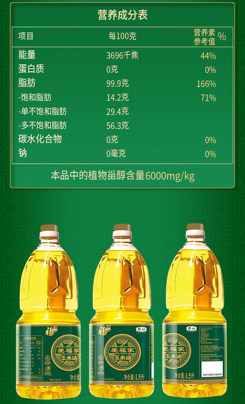 净含量:1.5L 推荐理由: 中粮央企品质:福临门出品,非转基因玉米胚芽,一级压榨,安全可靠。 健康营养:富含植物甾醇(约 6000mg/kg)、高不饱和脂肪酸,清淡不腻,护心血管微博。 好用省心:烟点高、少油烟,煎炒烹炸通用;1.5L 小桶装,新鲜易存,家用 / 送礼都合适