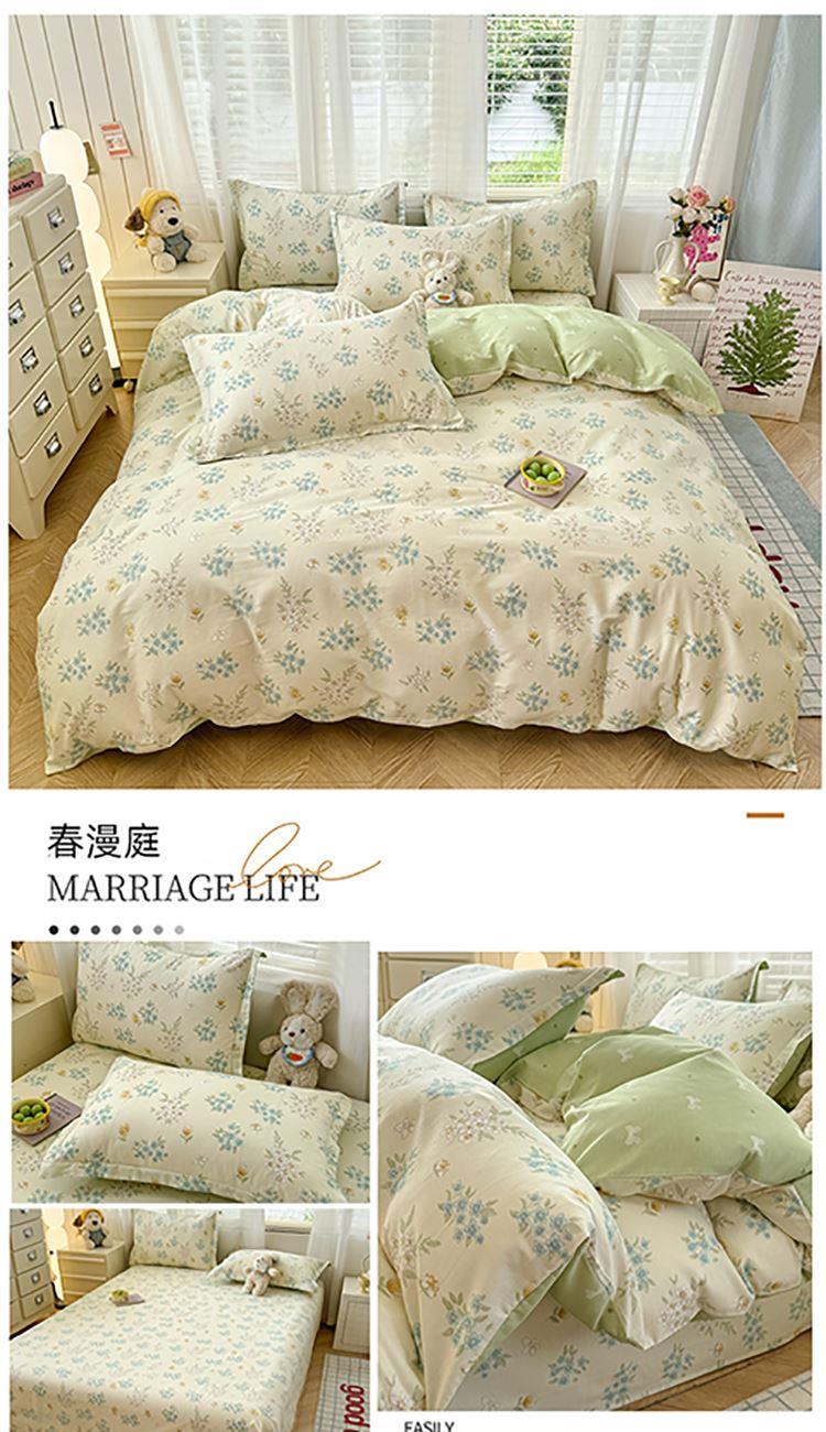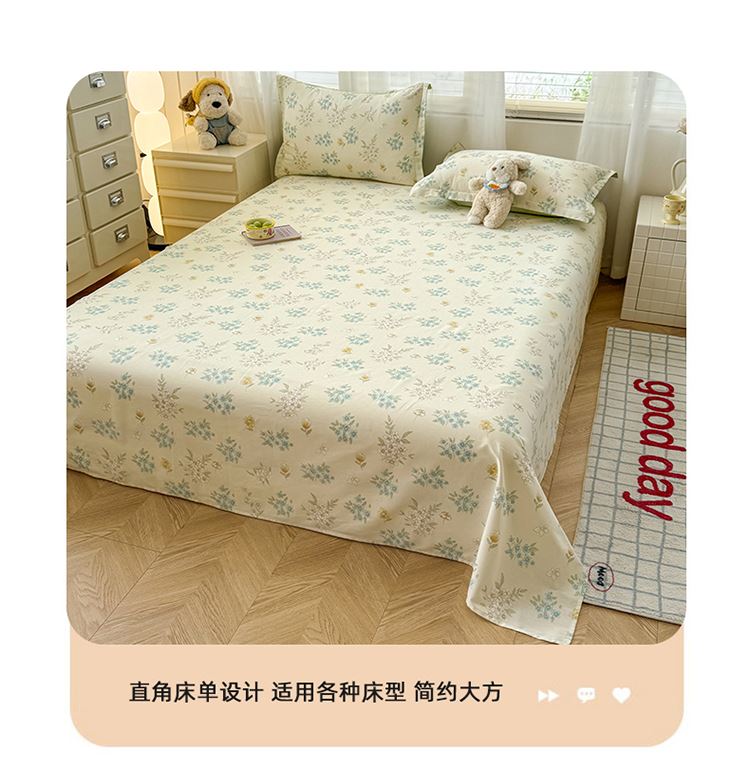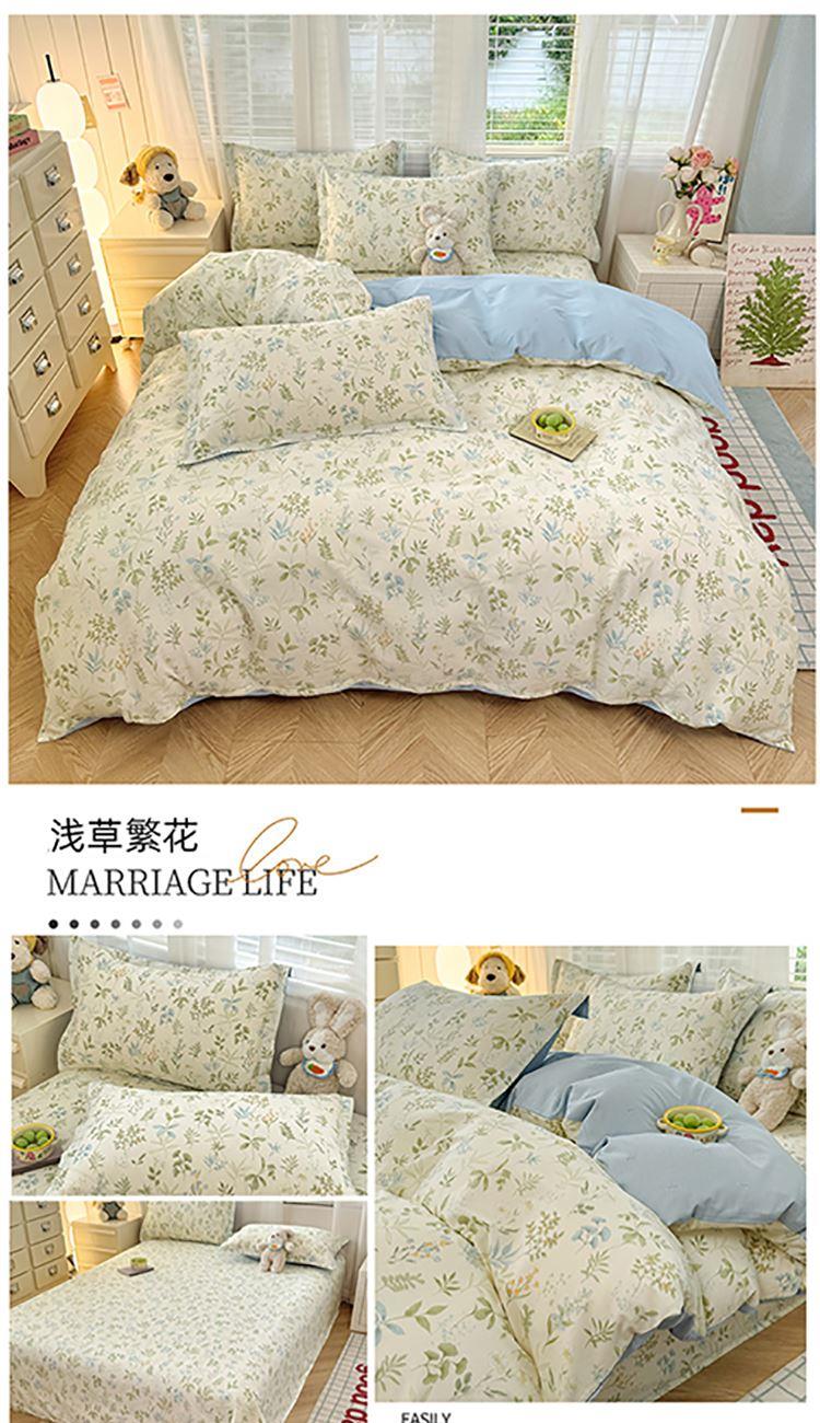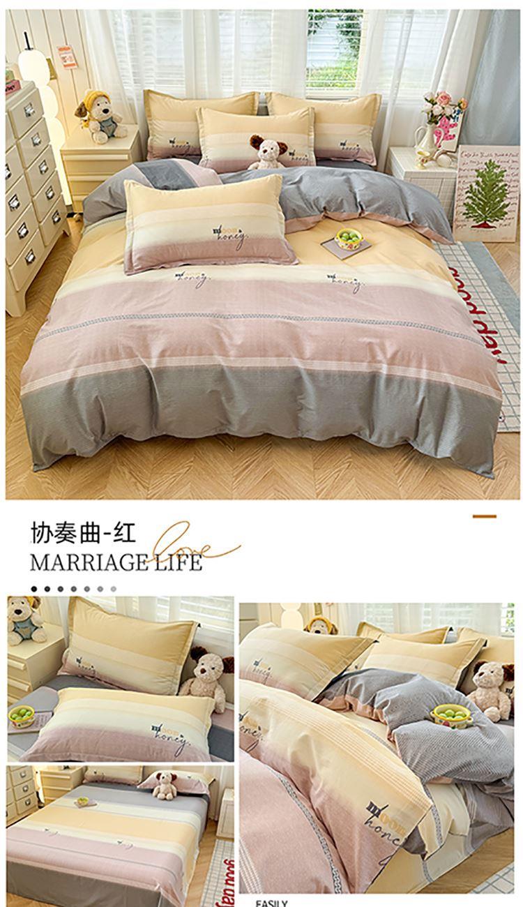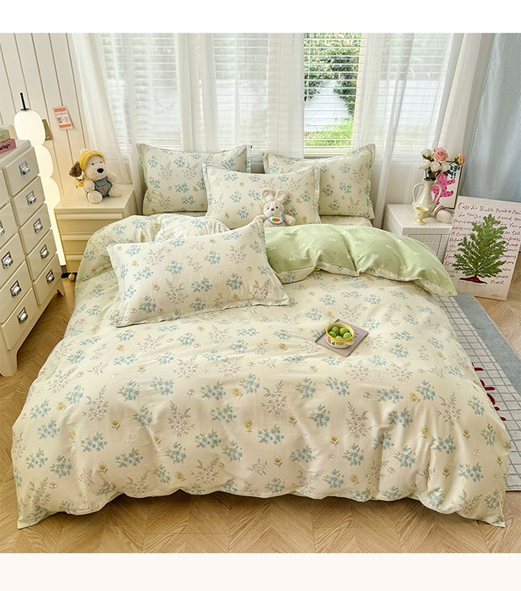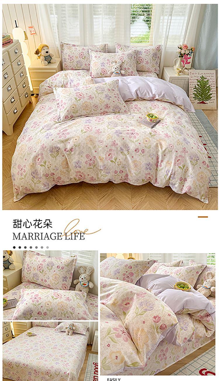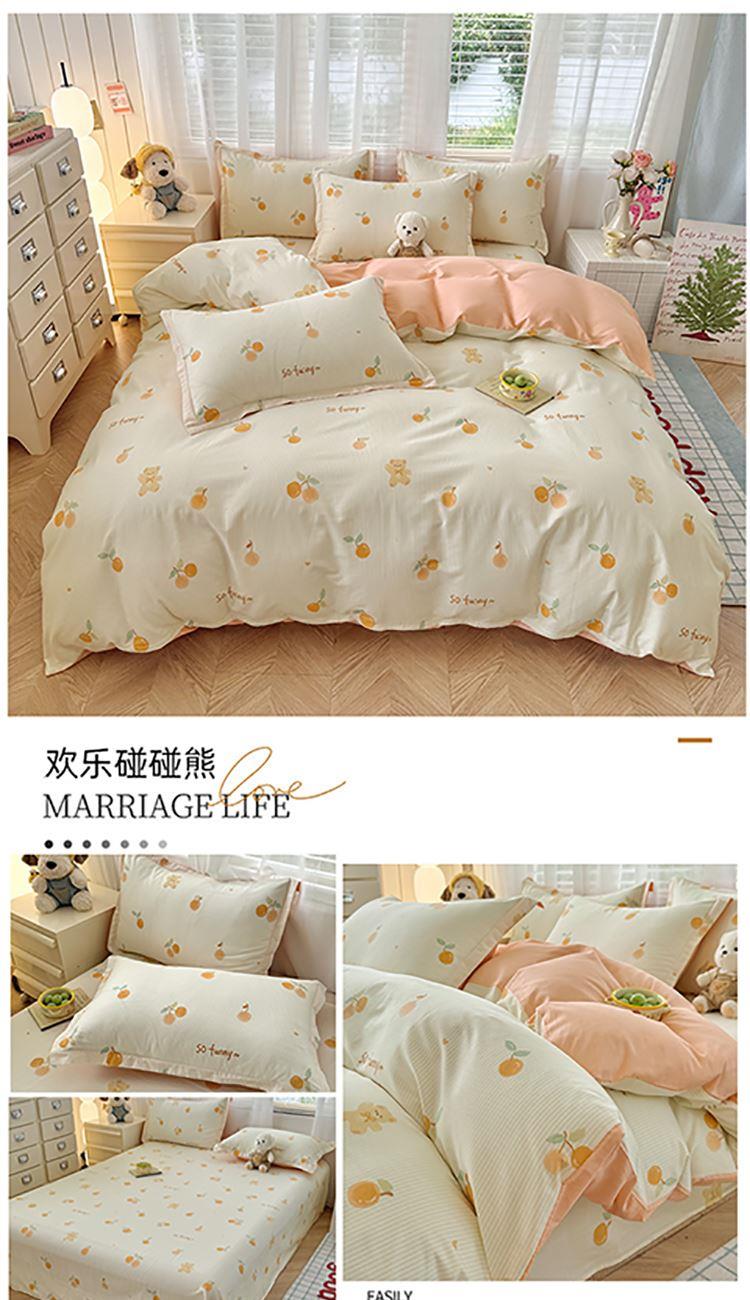 1:从内而外皆是棉与身体接触的每一寸都是天然阳光棉, 2:软糯亲肤舒适细腻质感, 触感细腻 柔软舒适 透气排湿 3:AB双版精心搭配的版型设计 给床品增添层次 愈睡愈爱 尺寸:1.8m床被套200*230cm*1床单:230*245cm *1 枕套:48*74cm*2 包装:彩盒