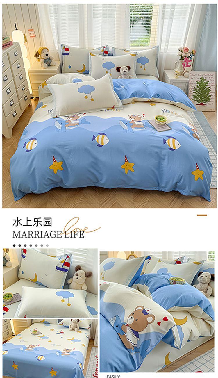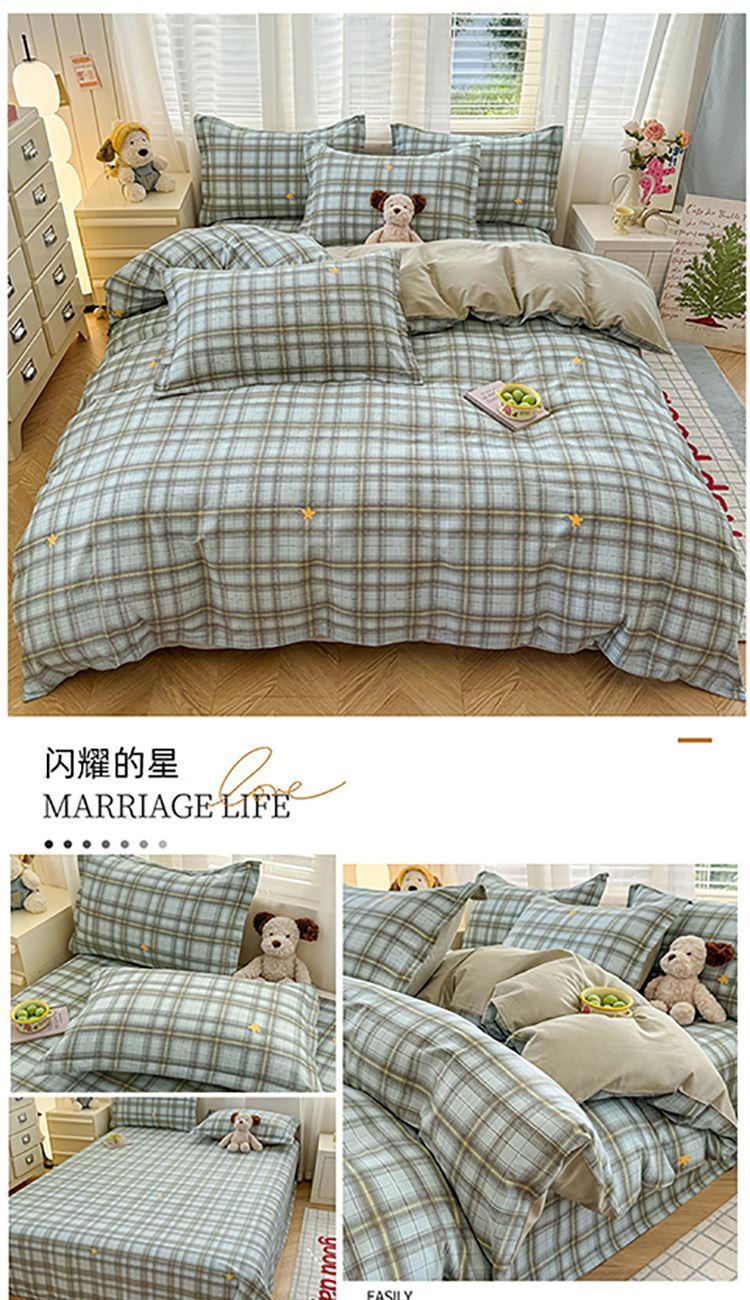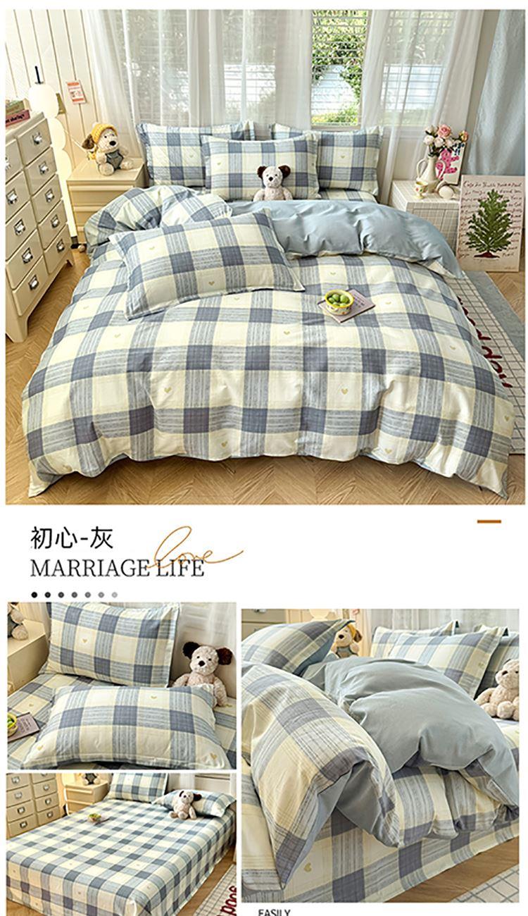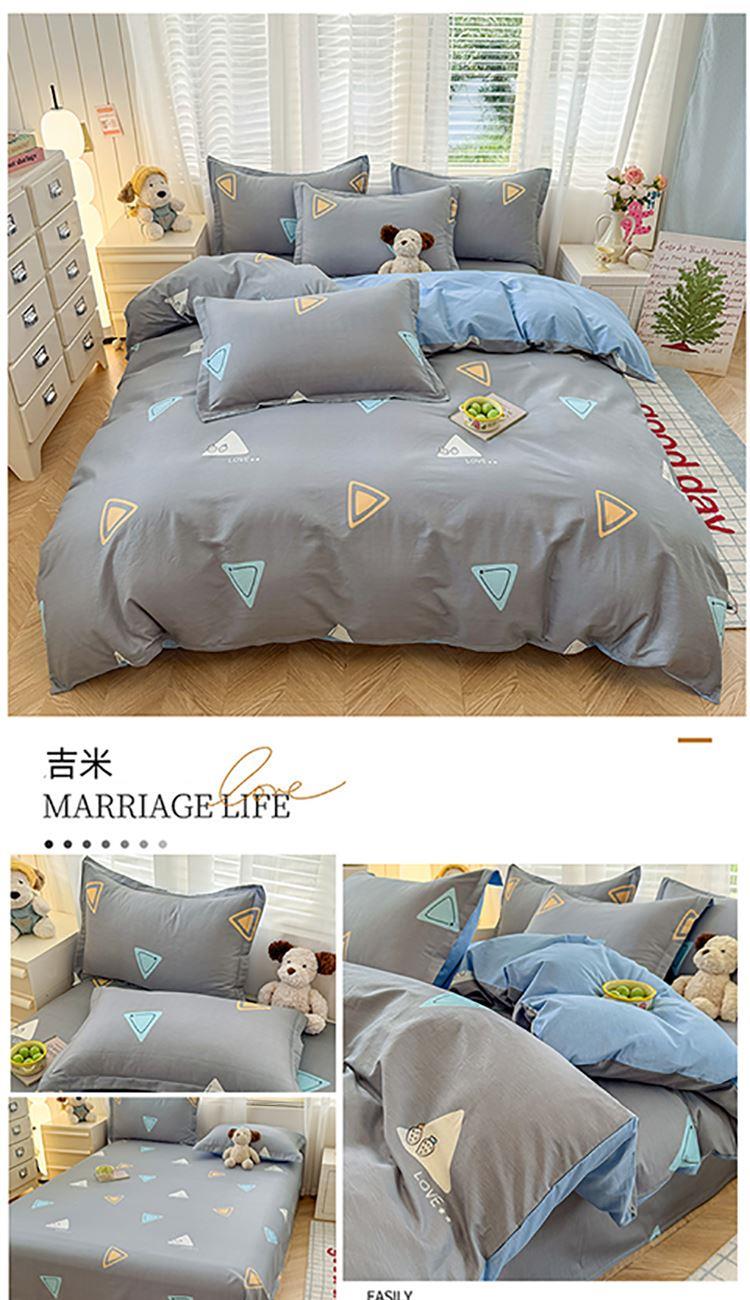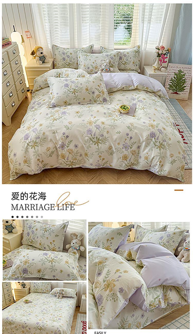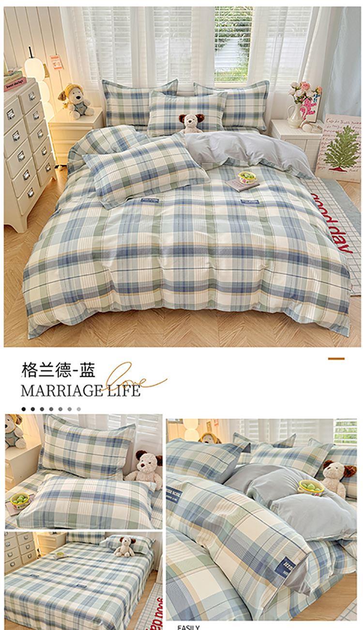 1:从内而外皆是棉与身体接触的每一寸都是天然阳光棉, 2:软糯亲肤舒适细腻质感, 触感细腻 柔软舒适 透气排湿 3:AB双版精心搭配的版型设计 给床品增添层次 愈睡愈爱 尺寸:1.8m床被套200*230cm*1床单:230*245cm *1 枕套:48*74cm*2 包装:彩盒