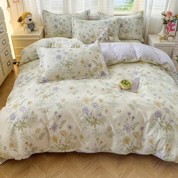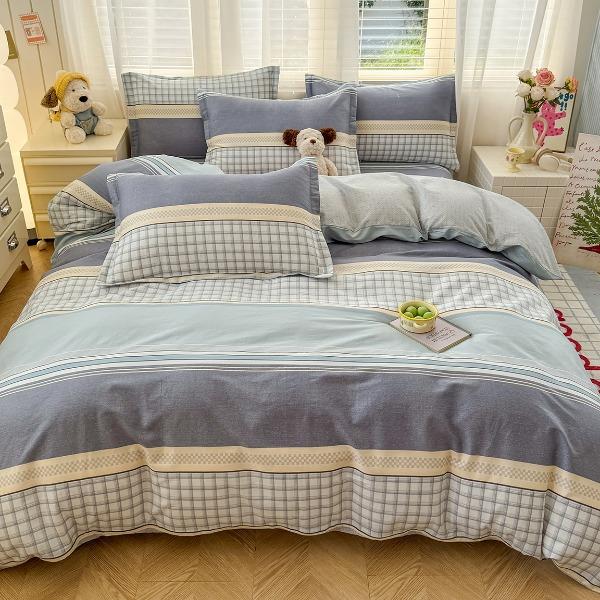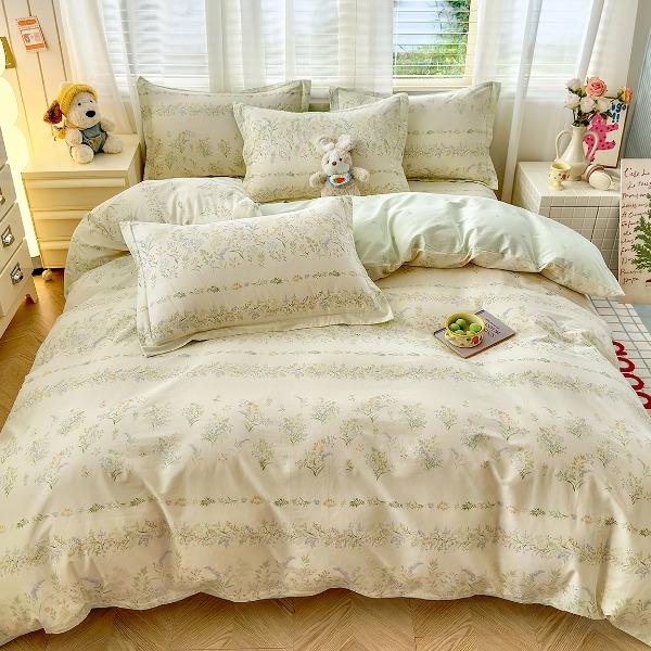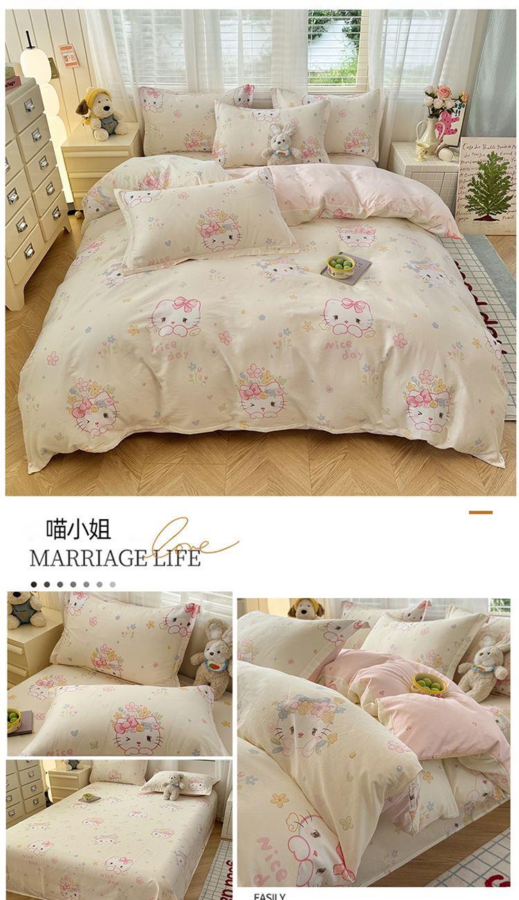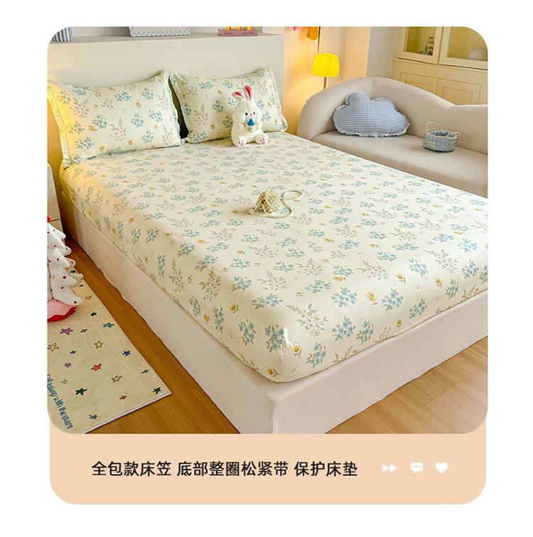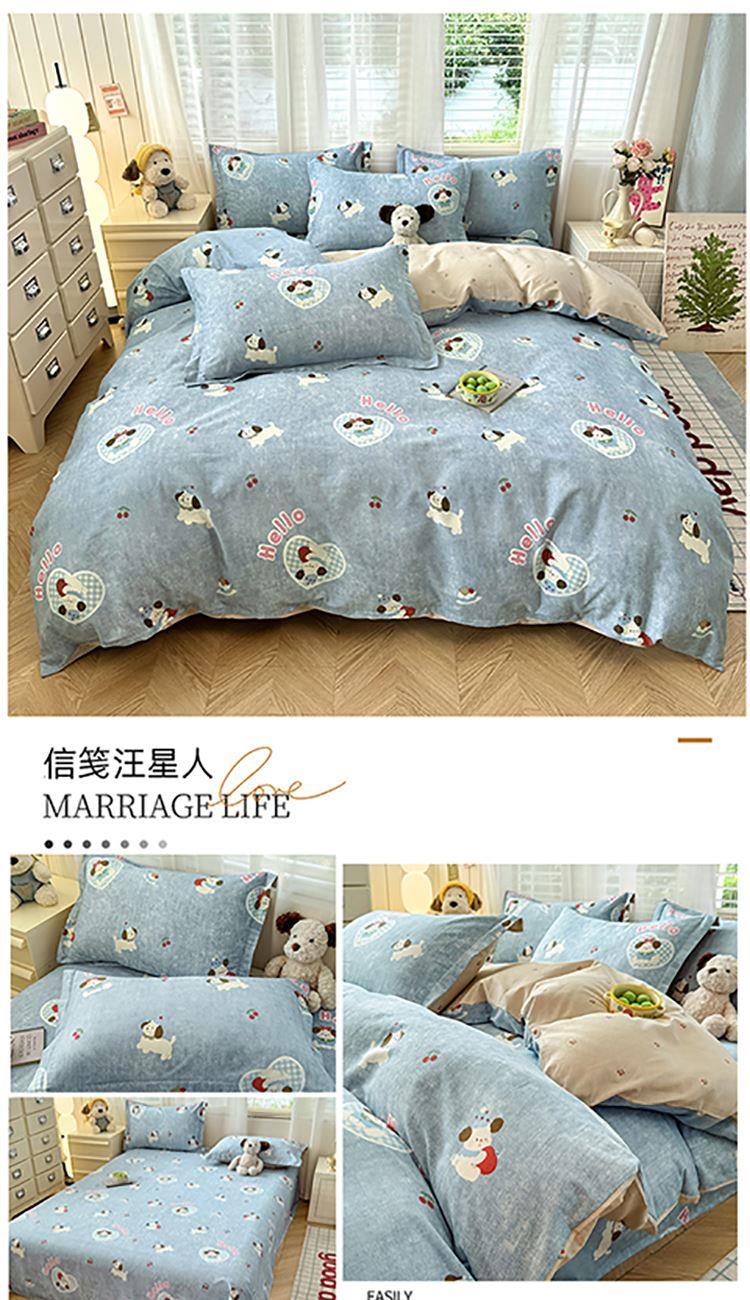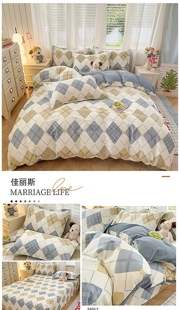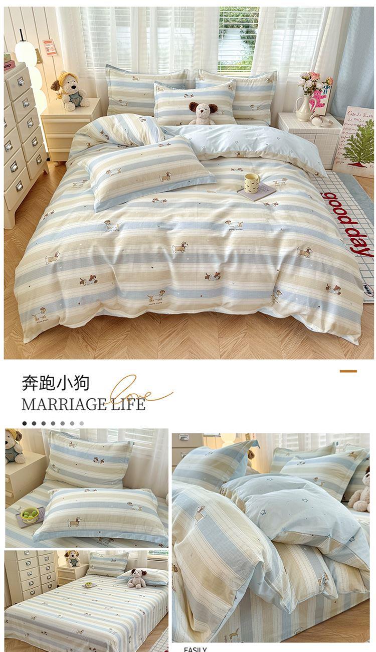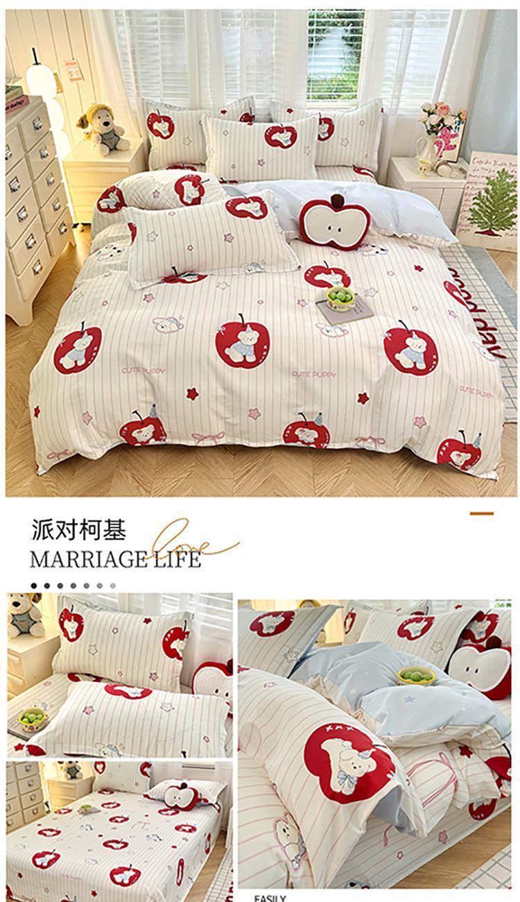 1:从内而外皆是棉与身体接触的每一寸都是天然阳光棉, 2:软糯亲肤舒适细腻质感, 触感细腻 柔软舒适 透气排湿 3:AB双版精心搭配的版型设计 给床品增添层次 愈睡愈爱 尺寸:1.8m床被套200*230cm*1床单:230*245cm *1 枕套:48*74cm*2 包装:彩盒